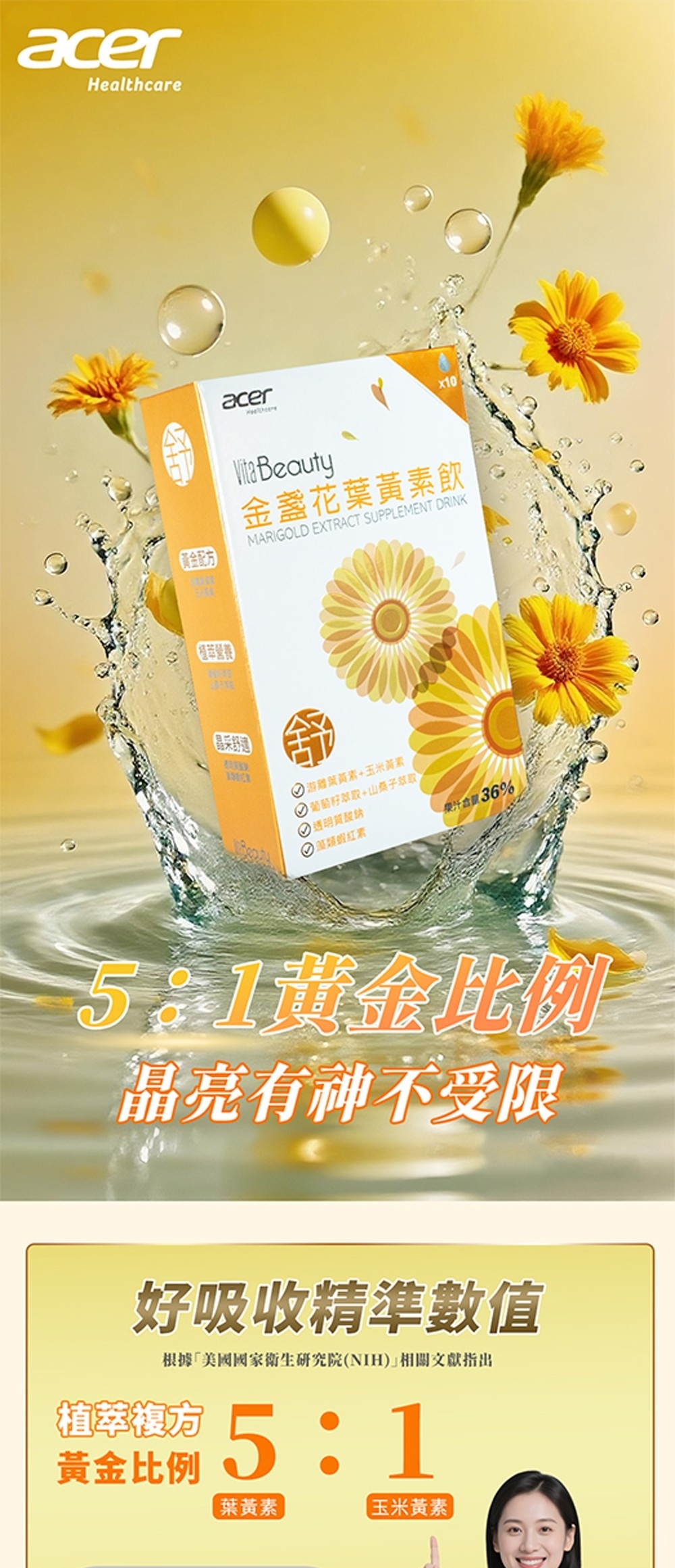 【宏碁健康】VitaBeauty金盞花葉黃素飲10包