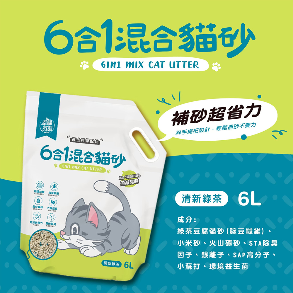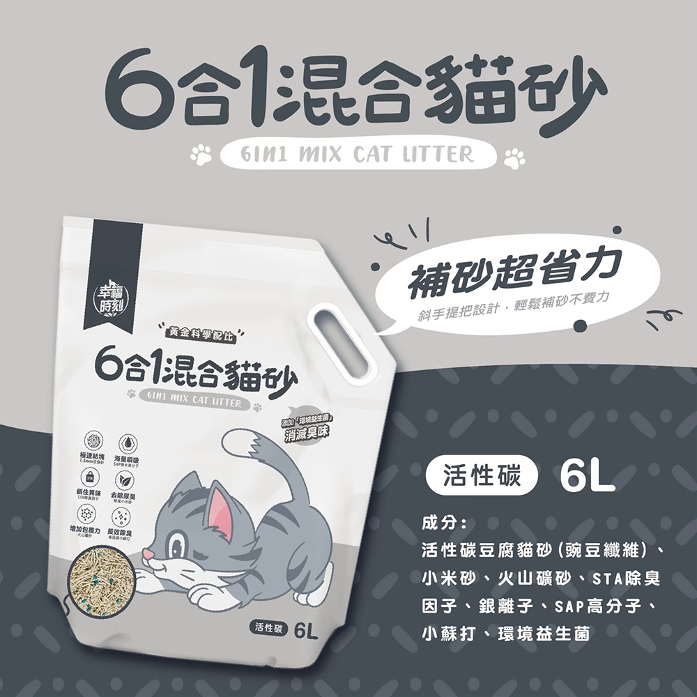 【幸福時刻】6合1混合貓砂 豆腐砂 礦砂 6L/2.5Kg X 6包組