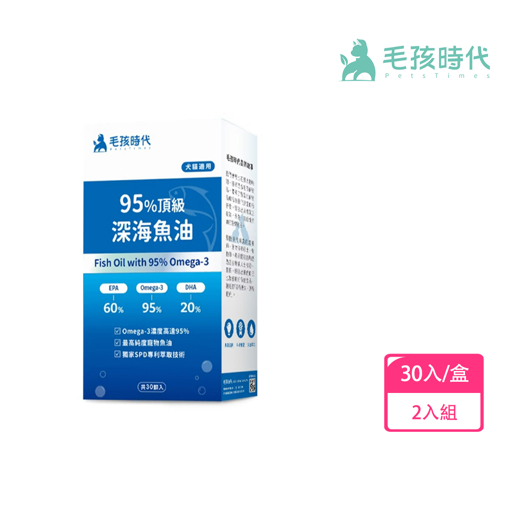 【毛孩時代】95%頂級深海 寵物魚油/貓狗魚油/寵物保健(2盒/60入)