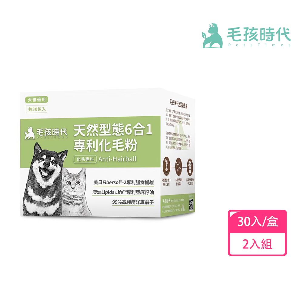 【毛孩時代】天然型態6合1專利化毛粉 貓狗保健食品/排毛粉/寵物保健(2盒/60入)