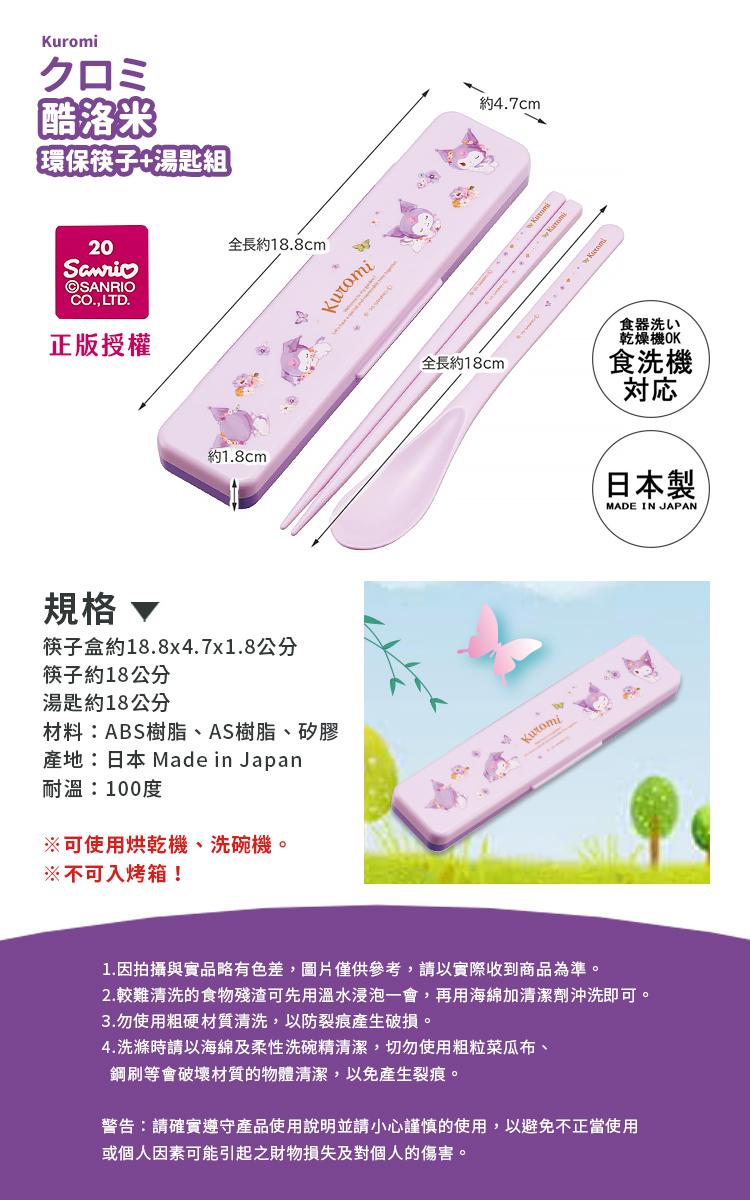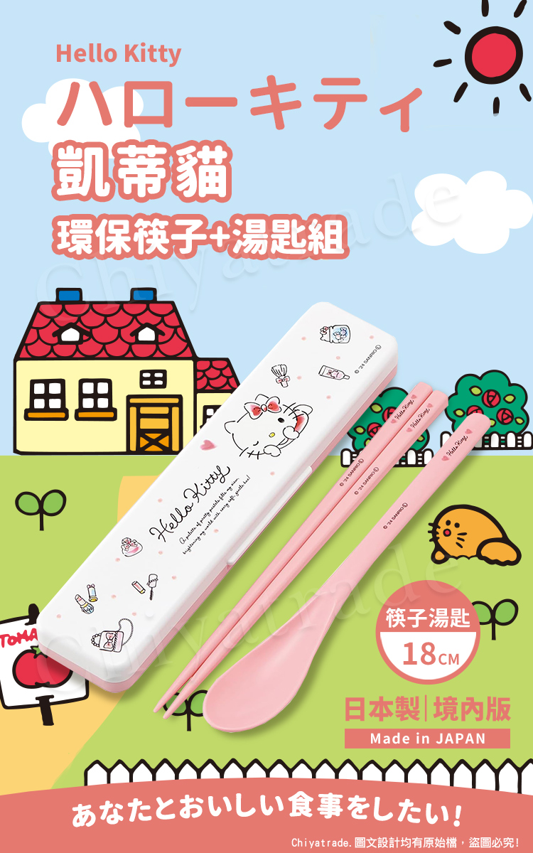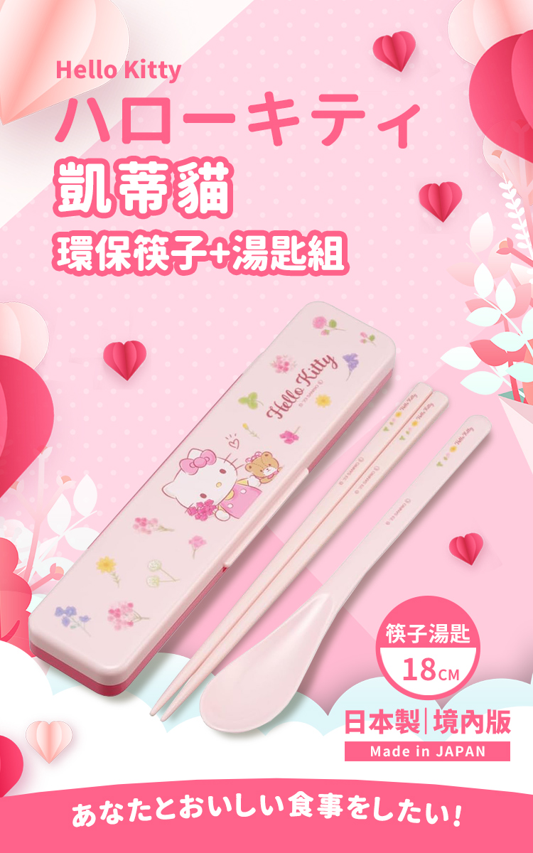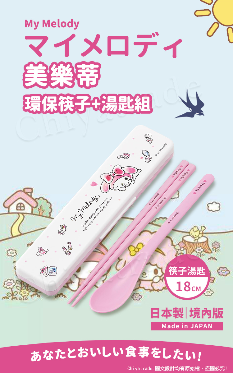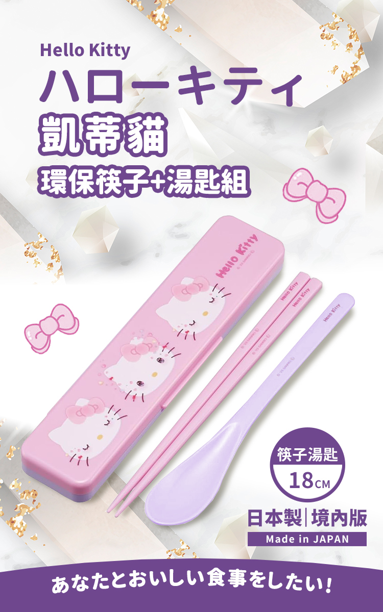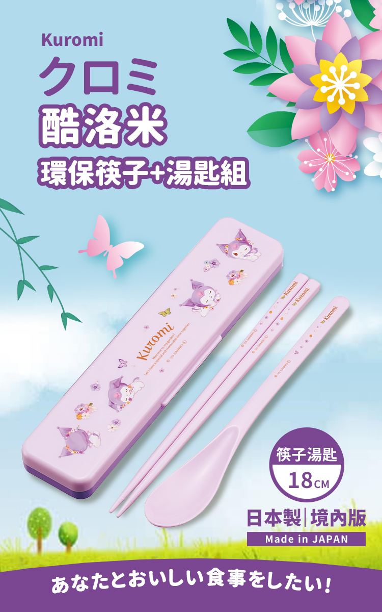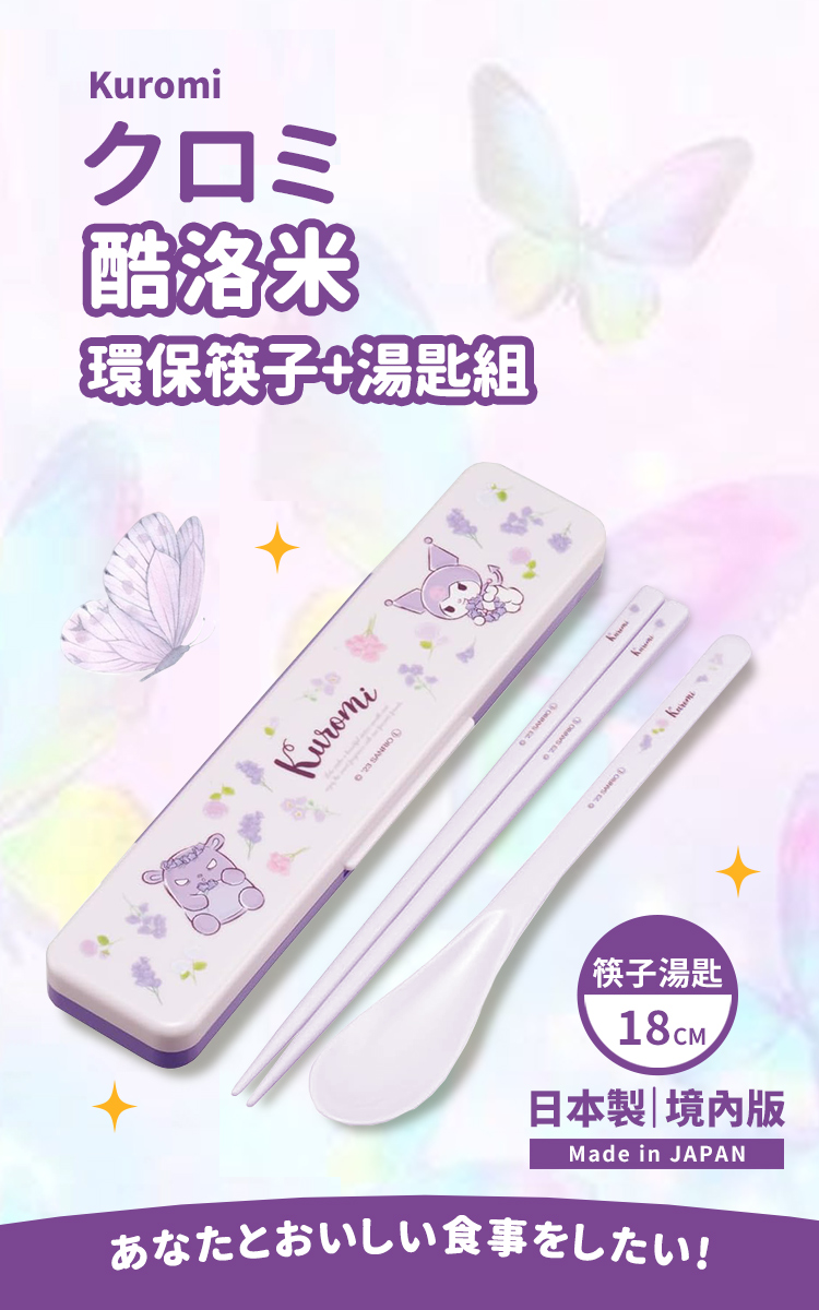 【百科良品】日本製 三麗鷗 凱蒂貓 酷洛米 美樂蒂 環保筷子+湯匙組 18CM(日本境內版)