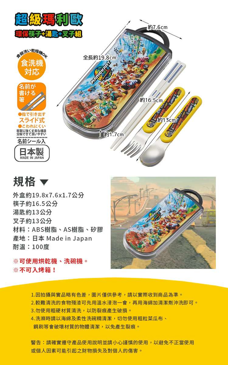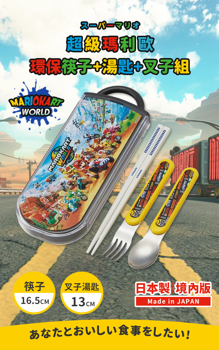 【百科良品】日本製 超級瑪利歐 環保筷子+湯匙+叉子三件餐具組(日本境內版)
