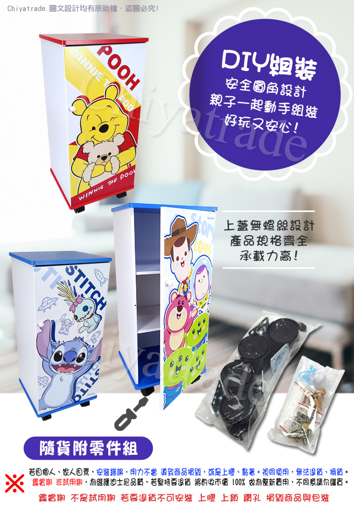【百科良品】迪士尼Disney 玩具總動員-DIY活動三層滾輪櫃 活動櫃 置物櫃 收納櫃(正版授權台灣製)