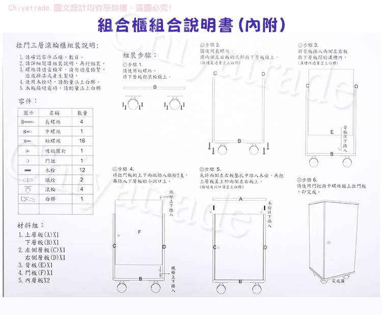 商品圖檔顏色會因電腦螢幕設定差異而略有不同,以實際商品顏色為準,無法接受的買家請三思!!1.材質為密集板,請遠離火源及高溫處並請勿用濕布擦式,如遇到損壞或變型請勿再使用。 2.勿使用化學清潔劑擦拭,以免損壞表面印刷及塗裝面。 3.注意不適合三歲以下兒童使用。 4.商品尺寸皆為平放測量以公分為單位,可能會因測量方式不同,或是製作過程等等因素而產生些許誤差,故誤差值在+-1公分上下為合理範圍唷! 5.商品圖檔顏色因電腦螢幕設定差異會略有不同,以實際商品顏色為準,敬請見諒。 6.若因個人因素,安裝錯誤,導致商品損毀,或是上膠、黏著。視同使用,無法接受退貨。7.鑑賞期非試用期,更非使用期。請注意!