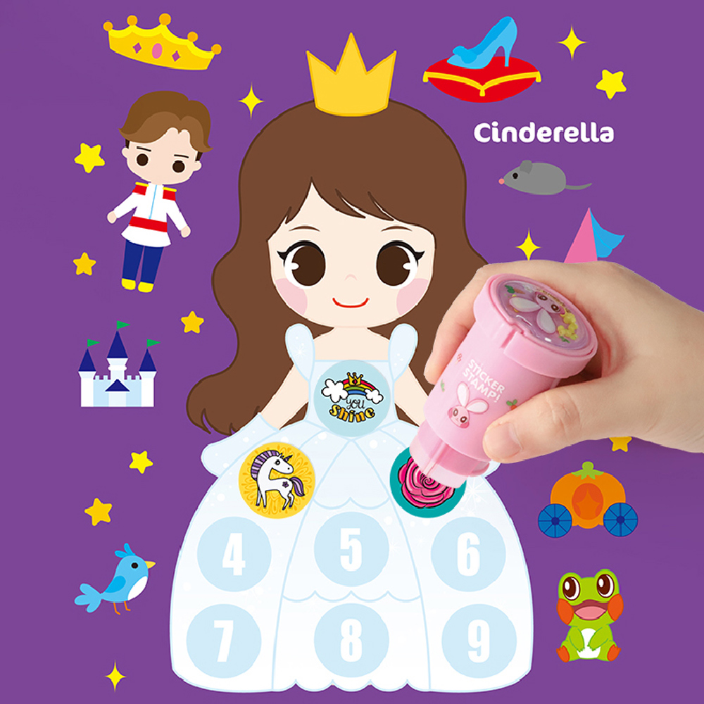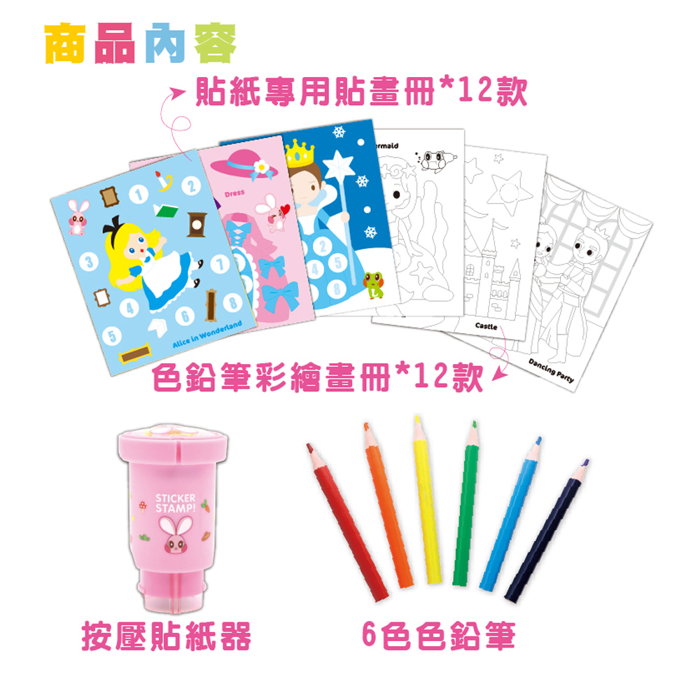 【韓國AMOS】魔法驚喜貼紙/著色/印章DIY繪畫組(公主)