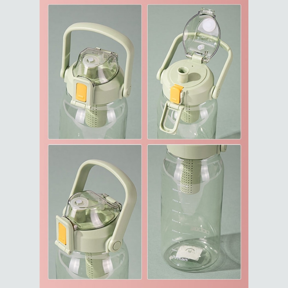 容量:1000ml尺寸:8.8*24cm材質:Tritan產地:中國注意事項:•使用前,請用食品級清潔劑以軟質海綿清洗乾淨再使用。•請勿盛裝酸性飲料,以免腐蝕產品。•本產品若掉落地面或遭強力碰撞,可能導致破裂,請小心使用。•盛裝飲品時,水量請勿過滿以免導致溢出。•商品請避免直接加熱或高溫消毒,以免損壞。•如長時間不使用,請清洗乾淨並擦乾置於通風處收放。•避免強力拉扯提把,提把僅作為輕便用途,避免用力拉扯或承受過大壓力,以防止斷裂或損壞。