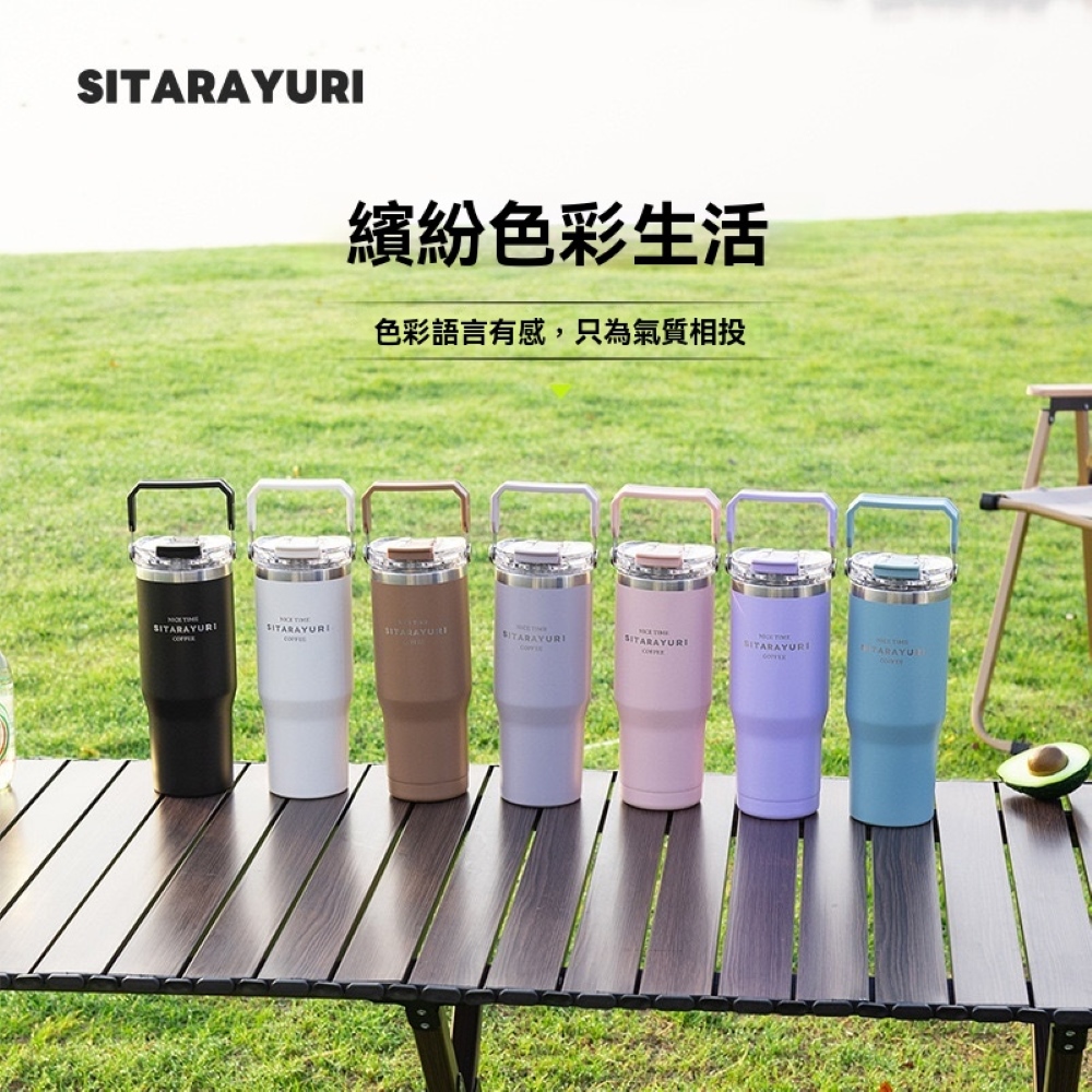 【H&R安室家】SITARAYURI 吸管直飲手提304不鏽鋼保溫杯900ml(H27)