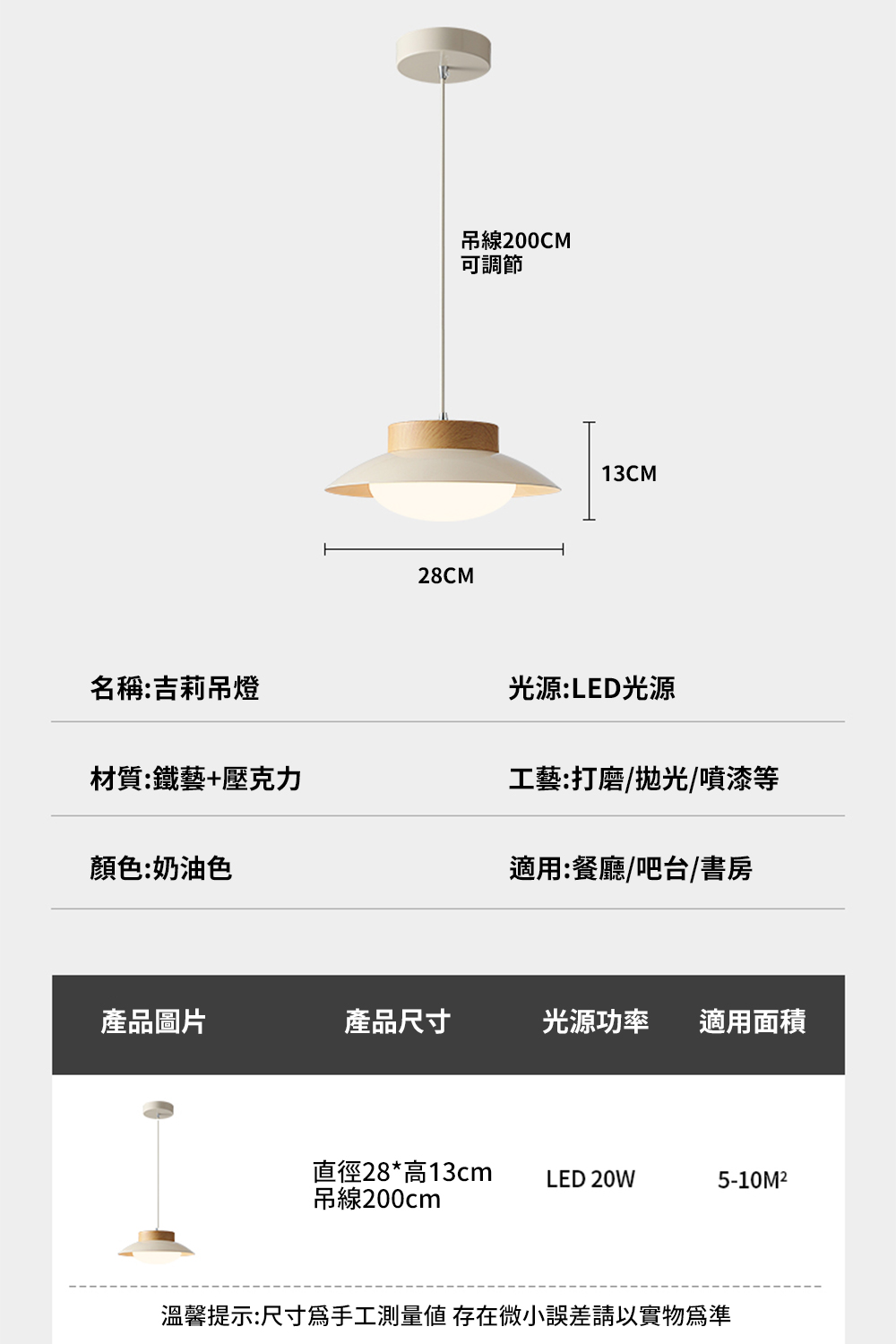 材質:壓克力 金屬烤漆規格:W27.5*H10CM光源:LED 5W 3色變光 線長1米注意事項:1.產品尺寸皆為人工測量,與實際尺寸會有些許誤差,(一般於正負3cm之內),請您將此誤差列入考慮後再行下單喔!2.燈具主商品原廠保固一年,而隨燈具附贈之各式光源一律不保固 , 燈泡顏色以黃光優先出貨3.因拍攝燈光、電腦解析度皆可能會造成實品與網頁上商品有些許色差,商品以收到的實品為主。