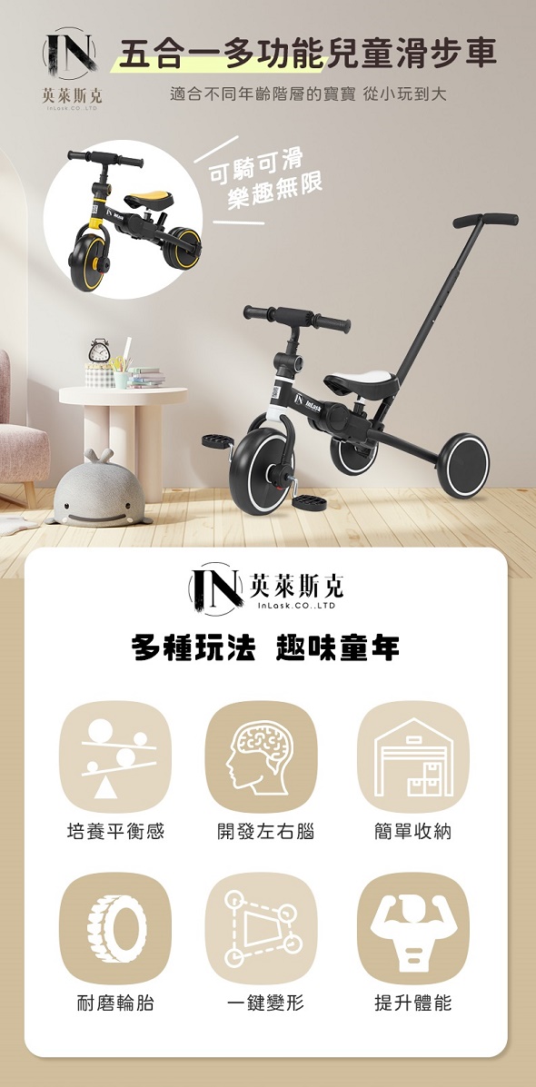 品名: 【InLask 英萊斯克】多功能兒童滑步車/兒童滑板車 商品尺寸:64x47x83cm