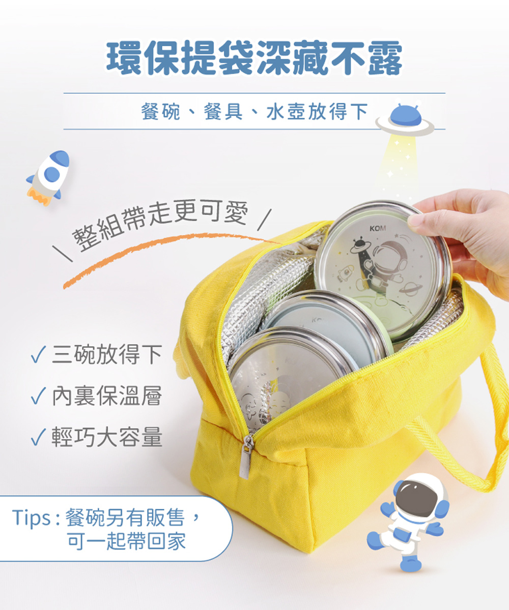 【KOM】夢想系列 磨砂316不鏽鋼兒童隔熱碗 三款各一入組 贈便當袋(幼兒園指定/圓匙升級)
