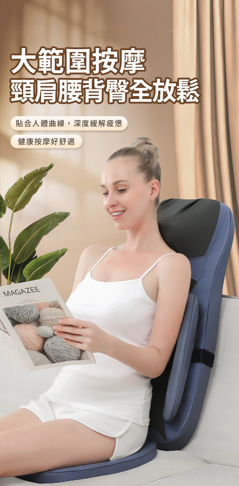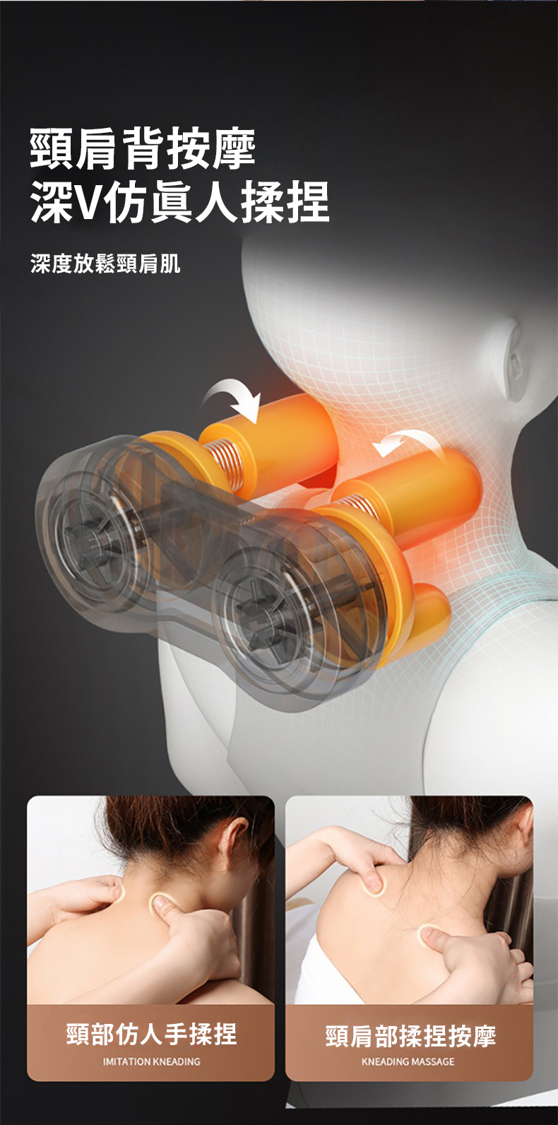 按摩手法:震動.熱敷.推拿.揉捏