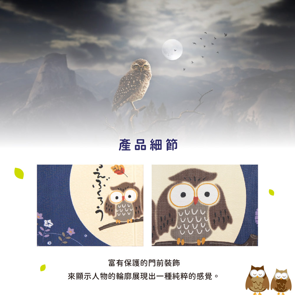 日本製【コスモ】長門簾《貓頭鷹》海軍藍フクロウは【不苦労】など語呂合わせから福を招くと言われており縁起の良いのれんです。使用場所に合わせて使える3サイズです。縁起物/開運/福招き/梟/紺/青/NV/ネイビー/藍據說貓頭鷹可以帶來好運,因為它們有”有忘掉苦勞去厄開運”等雙關語這是一個吉祥的善意,好運護身符。生產國: 日本材質/成分:100%聚酯纖維包裝:獨立袋包裝顏色:海軍藍尺寸:約85公分(寬)x 150 公分(長)國際條碼:4943741000938出貨:門簾*1件清洗方式:可水洗、不可漂白、不可烘乾顏色:如圖,網頁產品因拍攝與各顯示器顯色不同關係,與實品略有差異, 此商品圖為參考用之情境圖示,產品內容以規格敘述內容為準適用:臥室門、廚房門、浴室門、衣櫥、玄關入口...等【注意事項】伸縮桿需自備,商品內容為門簾本體並無附桿子