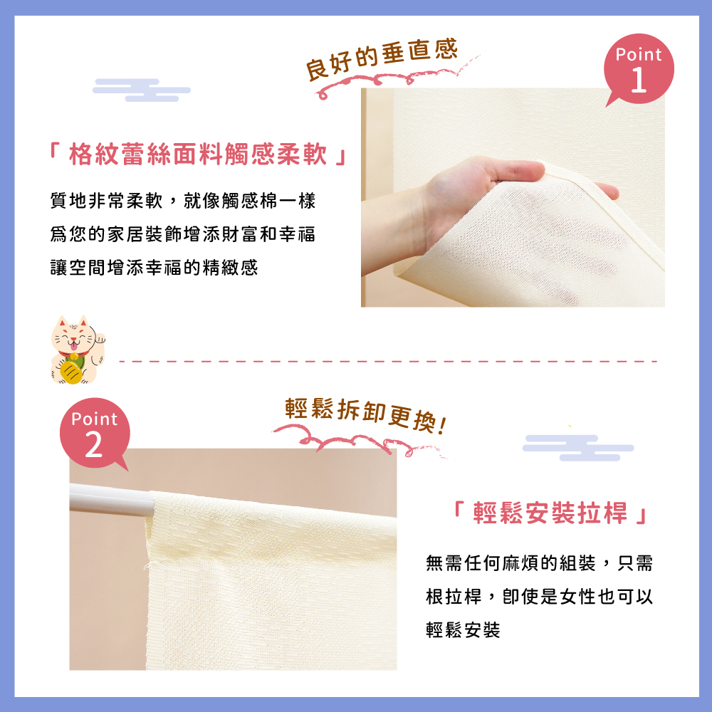 日本製【コスモ】長門簾《招福開運》 デザインはそのまま、市松模様の少し透け感のある生地に変え再販になりました。金色プリントの華やかさと墨絵のような手描き風の可愛らしい2匹のネコの【開運】【招福】【招きねこ】縁起物のれん です。 設計相同,但採用方格圖案。設計是一樣的,不過布料改為了稍微半透明的布料,正在重新發售。金色印花華麗,手繪風格可愛,就像一幅水墨畫。是兩隻貓的[走運][招財][招財貓]走運窗簾。窗簾的設計是傳統日式風格和傳統日式風格的結合。 生產國:日本材質/成分:100%聚酯纖維包裝:獨立袋包裝尺寸:約85 公分(寬)x 150 公分(長)國際條碼:4943741905752出貨:門簾*1件清洗方式:可水洗、不可漂白、不可烘乾顏色:如圖,網頁產品因拍攝與各顯示器顯色不同關係,與實品略有差異, 此商品圖為參考用之情境圖示,產品內容以規格敘述內容為準適用:臥室門、廚房門、浴室門、衣櫥、玄關入口...等 【注意事項】伸縮桿需自備,商品內容為門簾本體並無附桿子