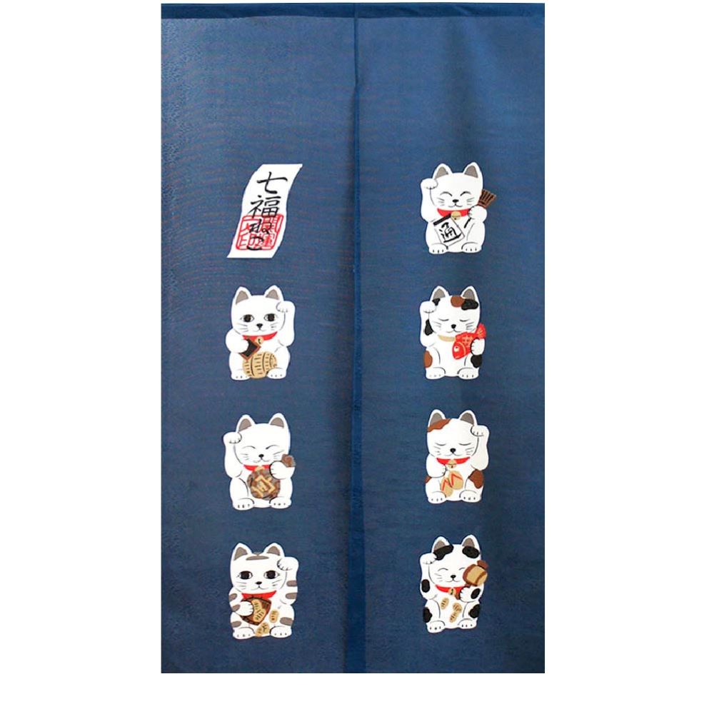 日本製【コスモ】長門簾《招財貓七福》海軍藍