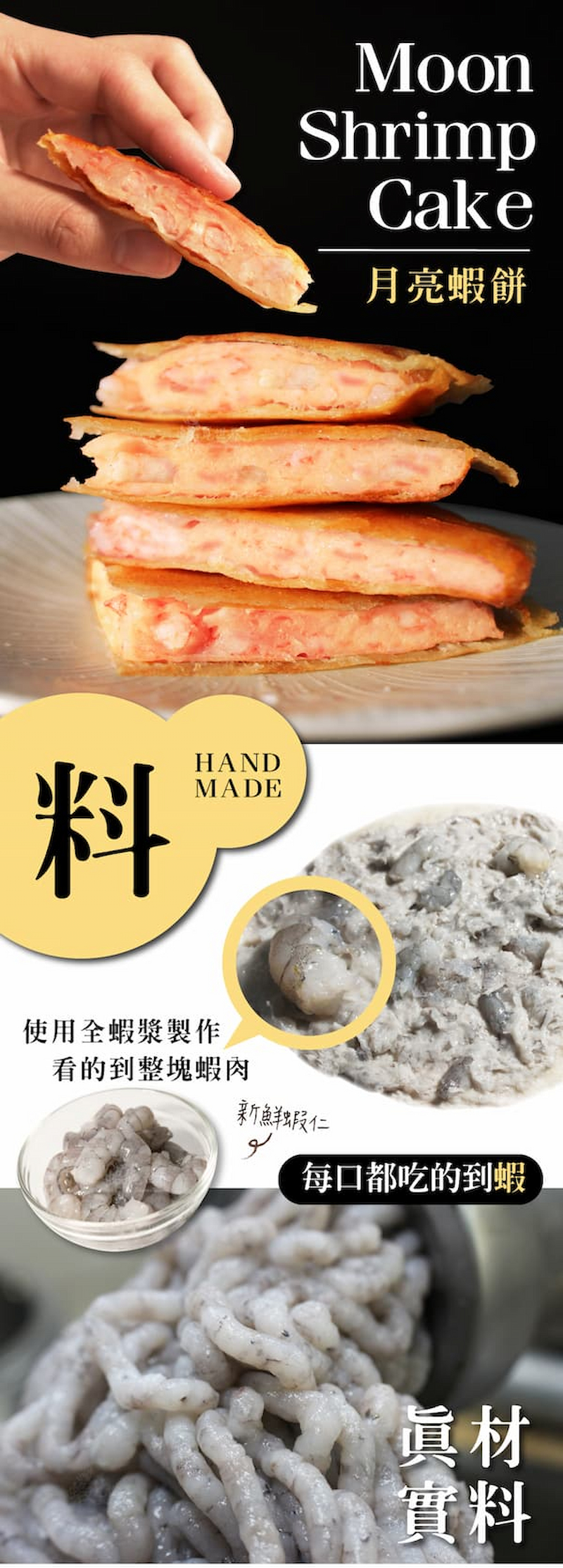 無膨發蝦仁,葡萄籽油,樹薯澱粉,鹽,糖,薑,白胡椒粉,春捲皮(高筋麵粉,水)