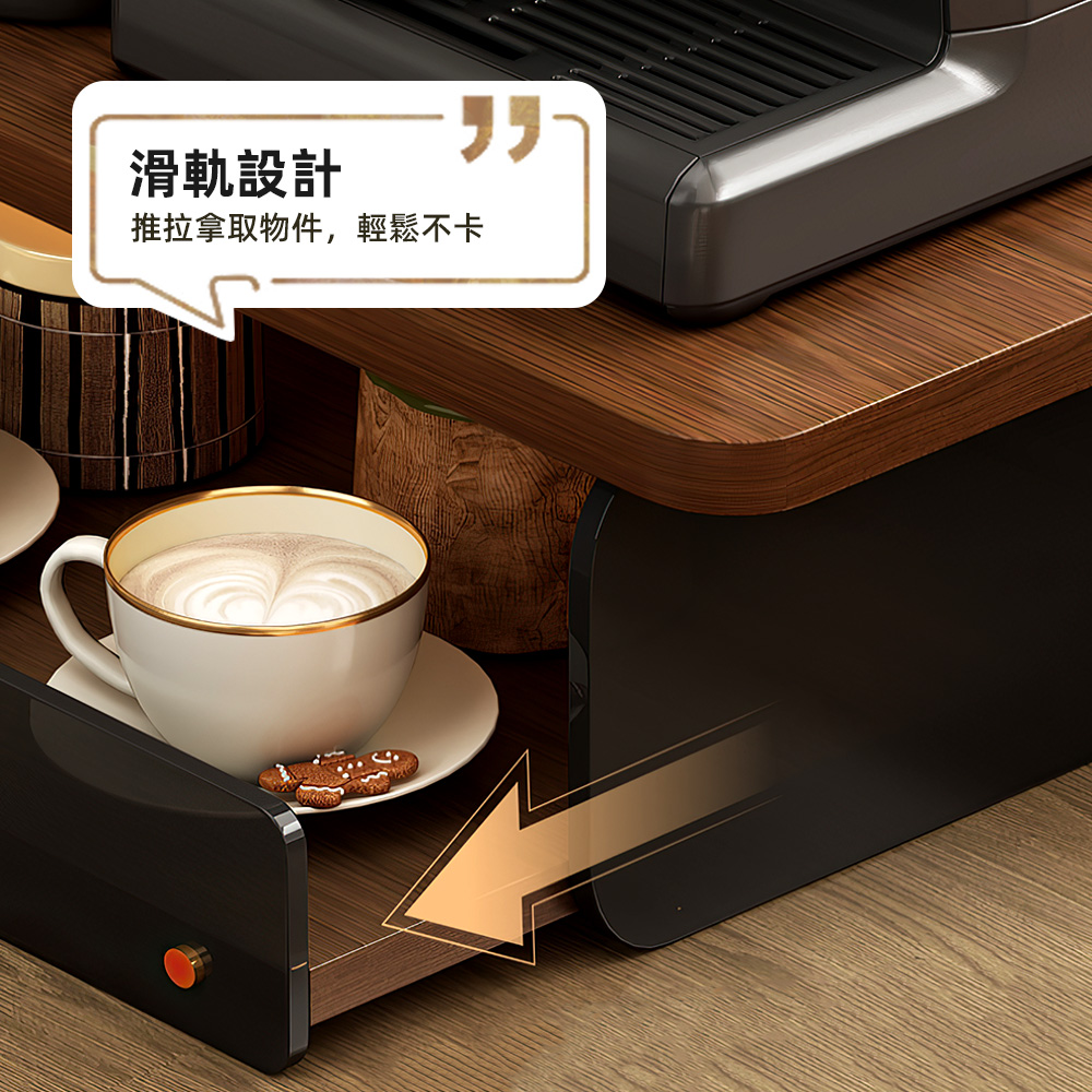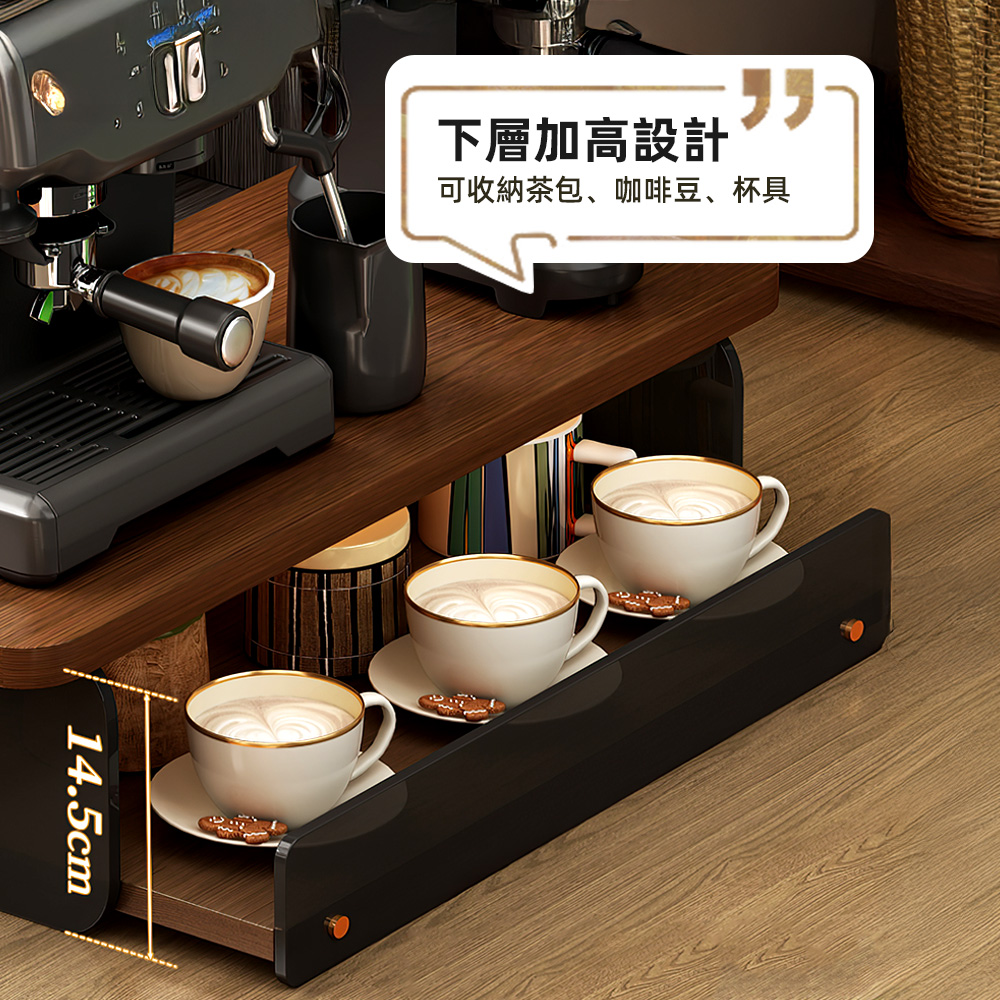 下層抽屜設計可收納茶包、咖啡豆、杯具