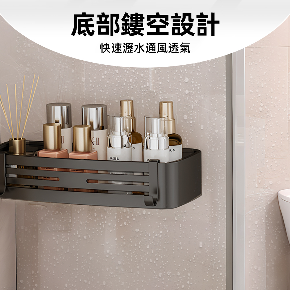 這款太空鋁吸盤浴室架,採用真空吸盤設計,免釘免鑽秒貼牆,還能承重不鬆脫。底部鏤空設計通風快瀝水,不怕積水發霉;大容量收納洗沐瓶罐不佔地,牆面立體空間完整利用。表面霧銀鋁合金材質,搭浴室風格也有質感不廉價。