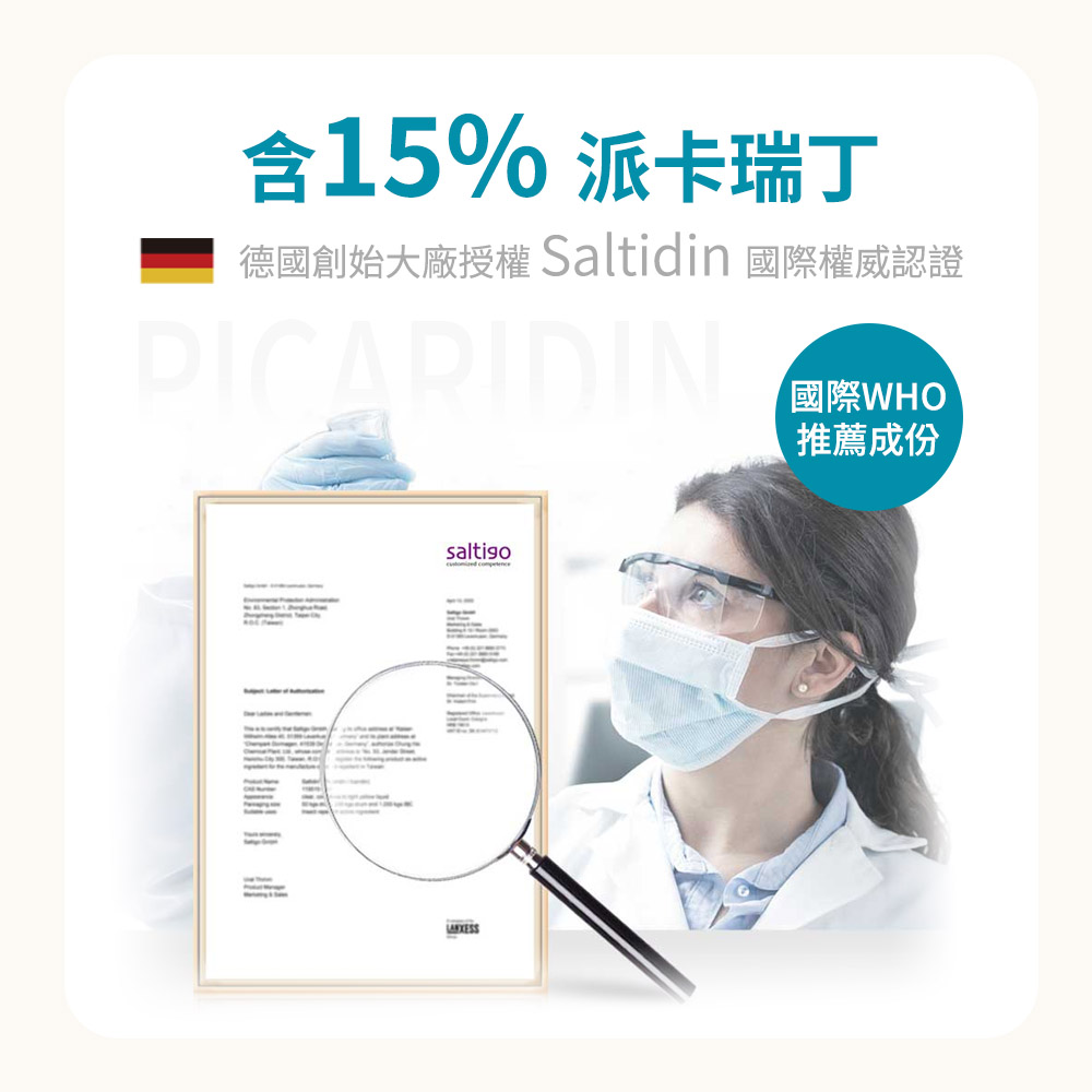 ●含國際認證成分15%派卡瑞丁