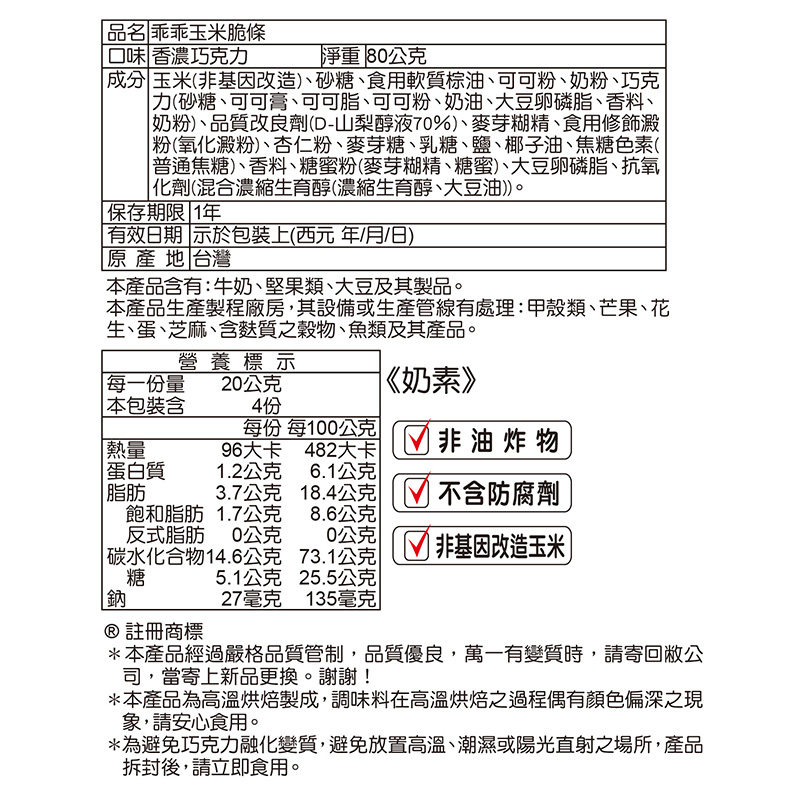 ◎Brand:乖乖 ◎Specifications: 80g克 x 1 x 1Pack包