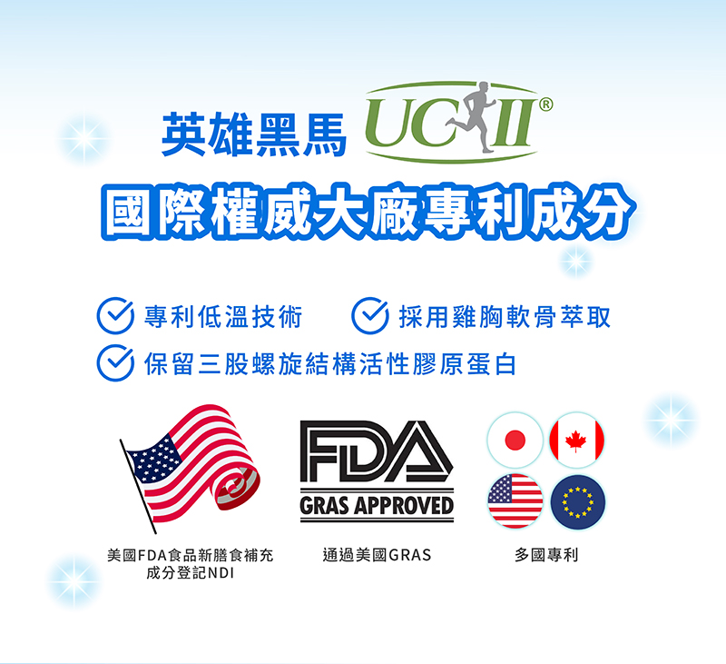 ◉商品成份:葡萄糖胺鹽酸鹽、甲基硫醯基甲烷(MSM)、鯊魚軟骨粉、鳳梨萃取物(鳳梨萃取物、乳糖、麥芽糊精)、貓爪藤根萃取物 ( 貓爪藤根萃取物、麥芽糊精)、檸檬酸鈣、膠原蛋白複合物 (雞胸軟骨抽出物、氯化鉀)、硬脂酸鎂、膽鈣化醇(維生素D3)(辛烯基丁二酸鈉澱粉、蔗糖、抗壞血酸鈉(抗氧化劑)、中鏈三酸甘油酯、二氧化矽、維生素E (抗氧化劑)、維生素D3)、氰鈷胺明 (維生素B12)(麥芽糊精、磷酸鈉、檸檬酸、維生素B12)、生物素膠囊成分: 明膠、二氧化鈦、食用紅色六號、食用黃色五號、甘油、食用藍色一號、硫酸月桂酯鈉、純水