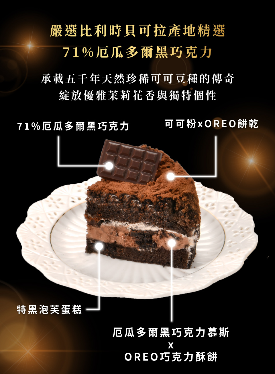 特黑泡芙蛋糕/厄瓜多爾黑巧克力慕斯/OREO巧克力酥餅/北海道奶霜/OREO餅乾