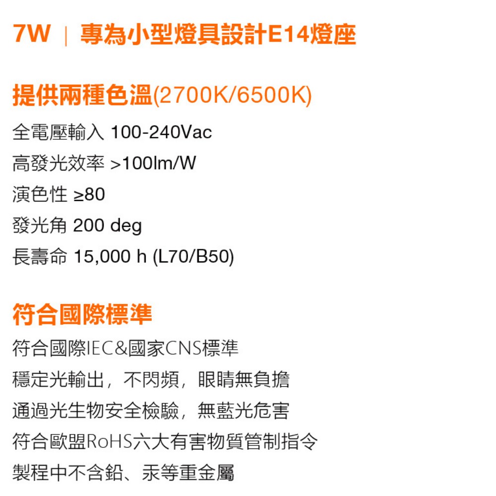 色溫 2700K黃光/6500K白光