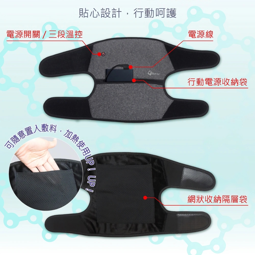 內置隱藏式行動電池收納帶,隨時隨地均可使用呵護家人健康