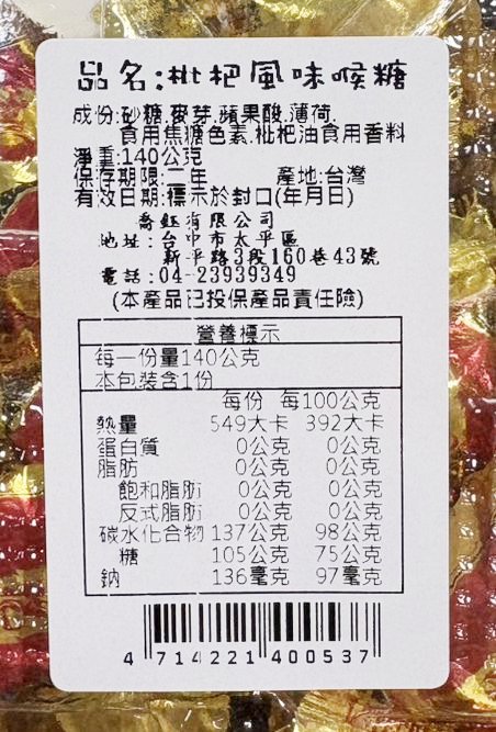 年貨大街 過年必備零食糖果 過年嘴饞 復刻懷舊糖果 枇杷風味喉糖140g [3包免運組]