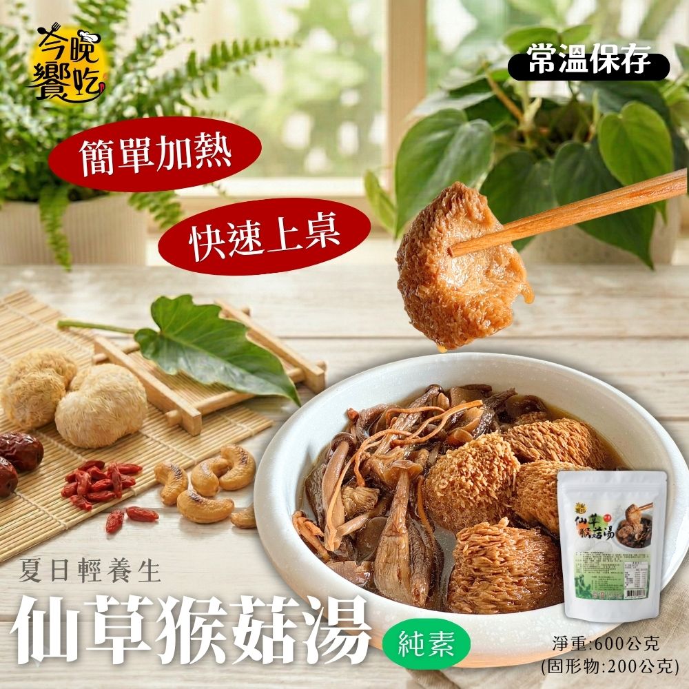 常溫湯品 火鍋湯底 料理湯底 團購夯品 純素猴頭菇湯底600g(固形物200g)(仙草/四神)[口味任選3包免運] 蔬食友善