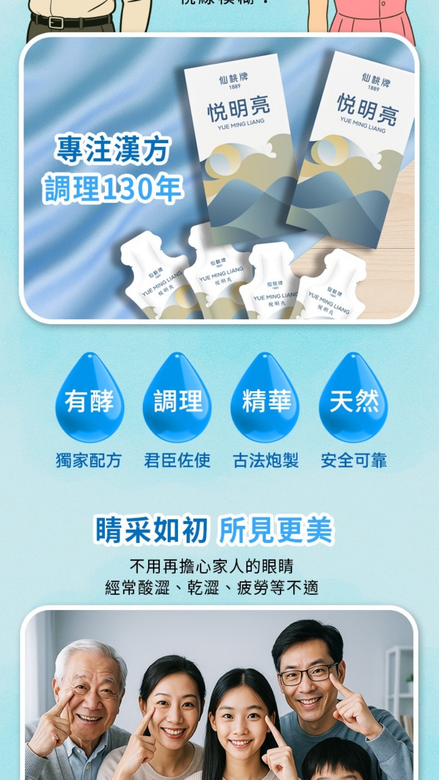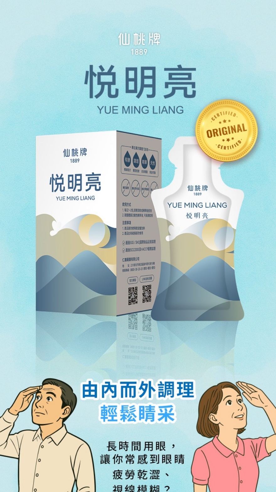 悅明亮原液(含石斛、黃耆、車前子、丹蔘、淮山、桑葚、茯苓、覆盆子、枸杞子、香櫞、菊花、蒼朮)、水、冰糖、黑醋栗濃縮汁
