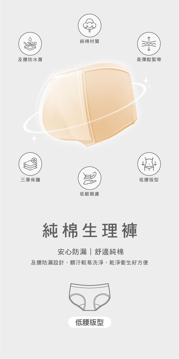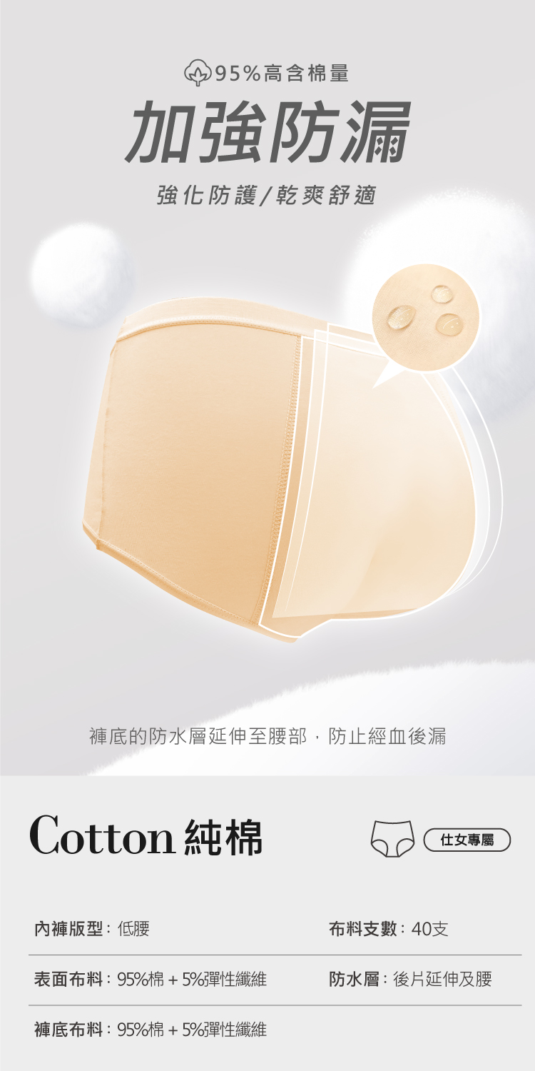 【伊柔EVEROY】舒適純棉低腰加高防漏生理內褲 M-2XL/Q內褲 9820-41膚