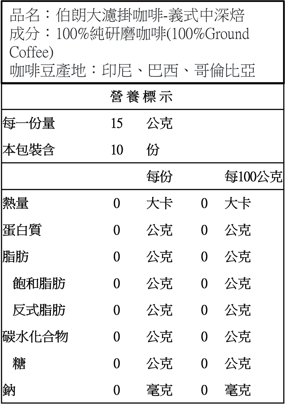 ◎Brand:伯朗 ◎Specifications: 15g克 x 10 x 1Box盒