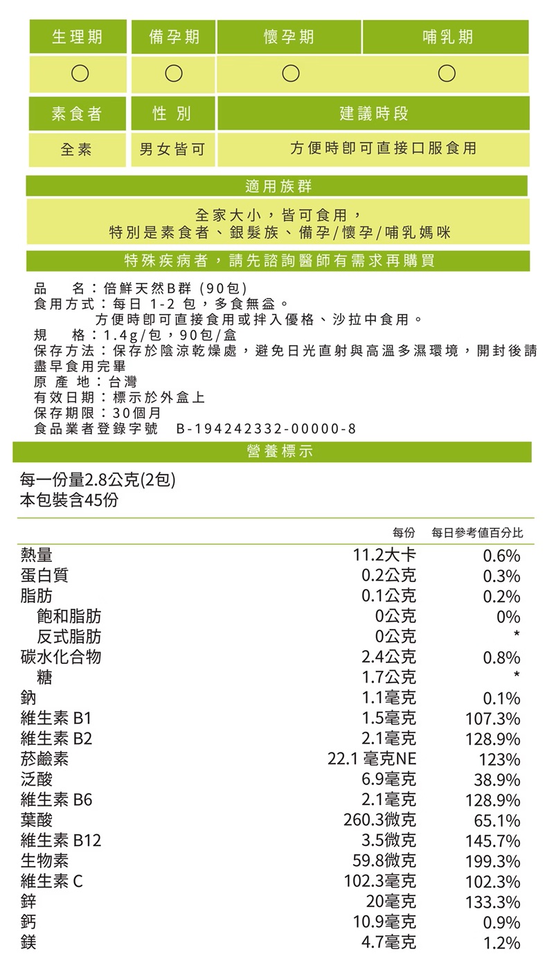 100%蕎麥+藜麥天然雙B全素可食,隨時充滿正能量✅無化學好自然✅天然好活性✅高效好利用✅粉包好吸收✅24HR好續航🔥全台第一支粉包B群!🔥