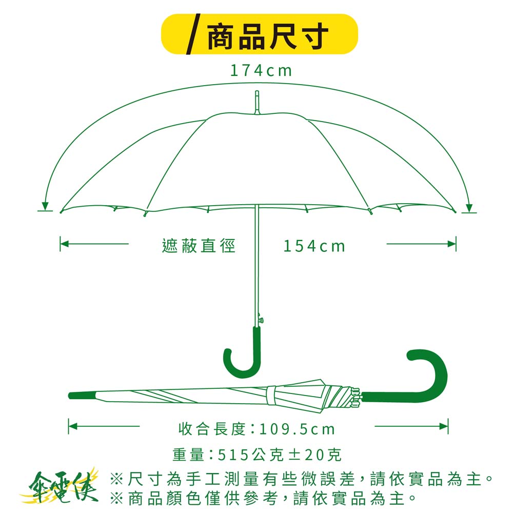 https://s-cf-tw.shopeesz.com/file/tw-11134208-23010-nz0oxre2kdmvd7☂️【商品特色】⚡️本賣場皆為現貨,無需長期等待⚡️ 防潑水PONGEE布隔絕紫外線效果達95.5%傘下隔熱降溫8度傘布經過全國公證檢驗和紡織研究所品質有保證⚡️傘面超大遮蔽直徑154公分⚡️適合家庭或愛打高爾夫球的您⚡️全玻纖骨架,耐風有彈性不易斷⚡️環形握槽,收傘好抓握⚡️輕量化玻纖中棒,耐風耐鏽好推收⚡️A JUMP泡棉直立握把,按壓輕鬆好握☂️【詳細規格】⚡傘骨:85X8AJ 全FRP玻纖骨⚡傘布:95.5%抗紫外線 PONGEE 防潑水布⚡重量:515±20克⚡收合長度:109.5cm⚡展開直徑:154cm☂️【運送資訊】服務營業時間為週一至週五 9:00~12:00 13:00~17:00每週六及週日暫停出貨☂️【終身維修】傘電俠的商品均享有終身維修的服務,但因需更換的零件不同,我們會請專業維修人員一雨傘的實際狀況評估是否需要酌收更換零件的材料費用,我們會與您報價後,您再決定是否要維修。☂️【注意事項(退換貨/FAQ)】1.使用前請先閱讀說明書上使用方法2.若您收到的商品有瑕疵、破損、零件短缺的狀況,請您於收到貨品後15天內提出~(請保持商品在全新的狀態且包裝完整)我們都是可以免費退貨的,如需退貨“請不要按”完成訂單和評價!按退貨選項就可以退貨了喔,我們會馬上幫您處理3.雨天使用後,請務必將傘撐開放置於陰涼處陰乾,延長傘的使用壽命4.溫馨提醒尺寸皆為手工測量,會有些許範圍差距顏色因每個螢幕顯示不同會有些許色差,若您會介意的話,建議下單前請三思#傘電俠 #手開直傘 #超輕量 #抗UV傘 #高爾夫球傘