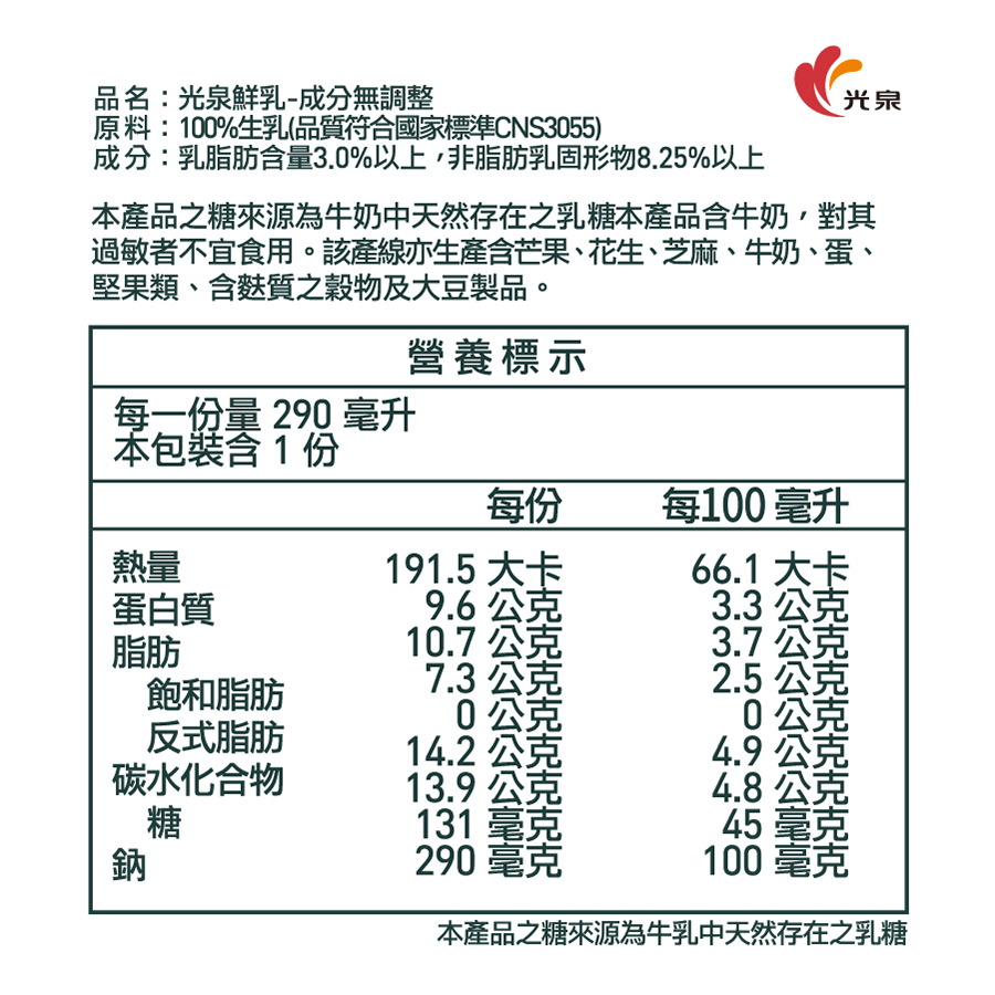 ◎Brand:光泉 ◎Specifications: 290ml毫升 x 1 x 1BOTTLE瓶