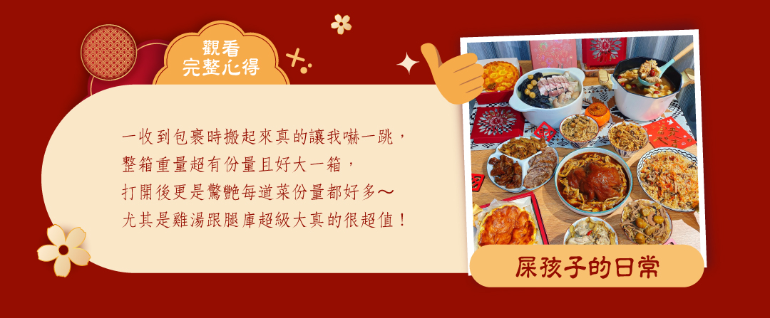 金玉滿堂佛跳牆 — 寓意新年財富滿滿、吉祥如意,為您和家人帶來最圓滿的幸福滋味🧧精選數十種的頂級食材,依食材特性以氽、蒸、炒、滷、炸、煨等工序細心處理,再煲以特製高湯,經長時間慢火熬製出甘醇濃郁、有層次的湯頭,主廚以精湛的料理工序,讓每樣食材保留獨有口感,同時也完美鎖住了高湯精華,輕咬一口,鮮香在口中散開更是迷人。➺ 真材實料|脆筍、芋頭、栗子、鈕扣菇、豬腳、豬肚、金鈎蝦、排骨酥、魚皮、紅棗與鳥蛋等➺ 特製湯底|繁雜工序與長時間地熬煮,品嘗出多層次的美味➺ 精心講究|以湯料分離的獨立包裝,鎖住最佳口感、完美風味