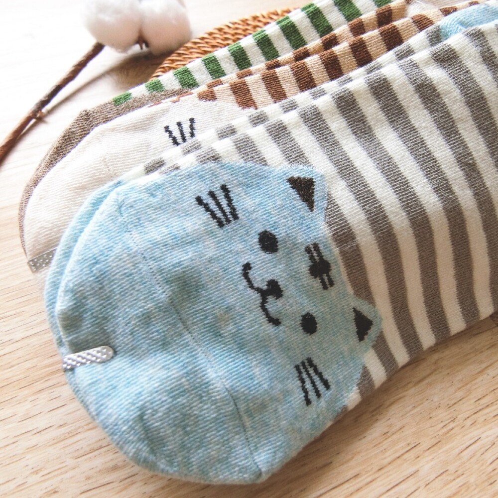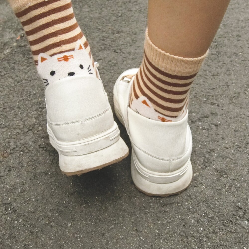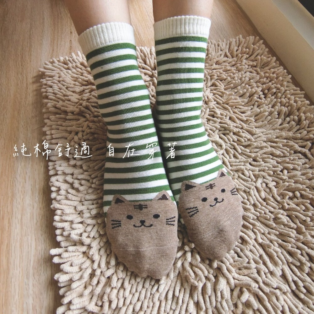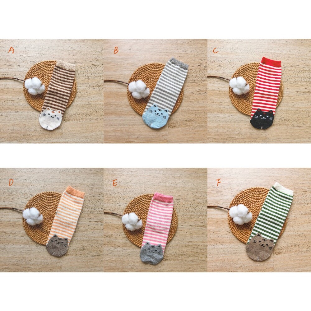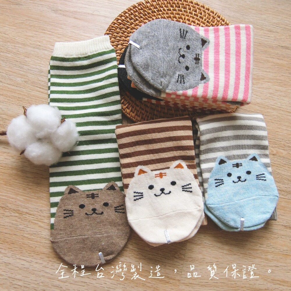 [Kaimei Cotton] 12 pairs of random excellent MIT Taiwan-made exquisite design pure cotton straight-cut women's socks striped cat style