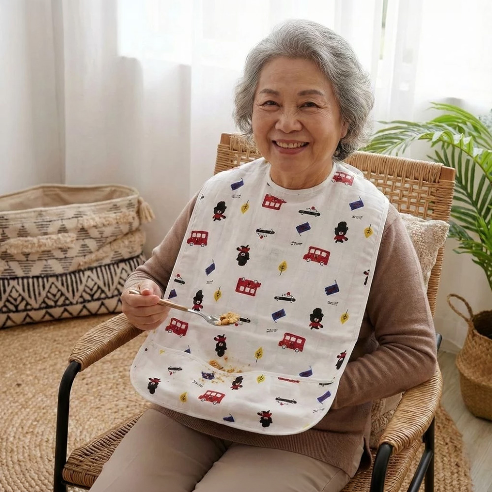 [Kaimei Cotton Industry] Women's 2-pack Top-grade adult pure cotton gauze waterproof bib Intimate design Exquisite quality Delicate printing