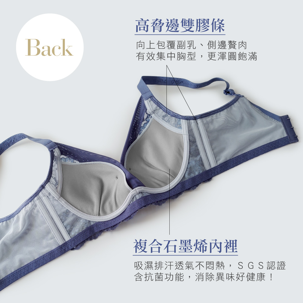 【Clany可蘭霓】浪漫日記石墨烯軟鋼圈集中包覆 BC罩杯不空杯蕾絲內衣 紫灰藍 8057-53