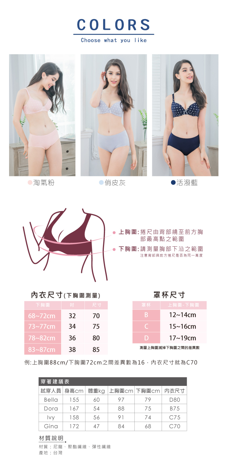 【Clany可蘭霓】舒適透氣點點軟鋼圈竹炭 BCD內衣 活潑藍 6981-57