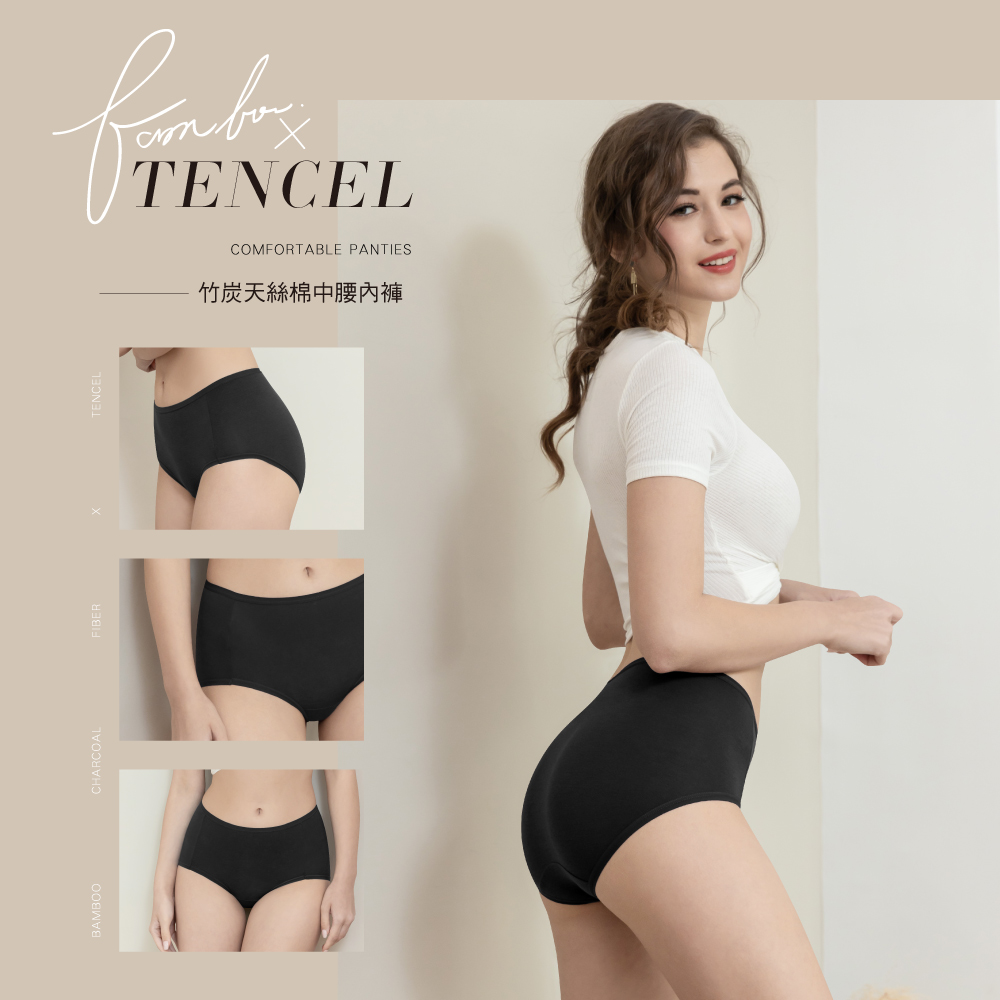 【Clany可蘭霓】竹碳天絲棉抑菌中腰內褲M-XL 黑色 2220-63