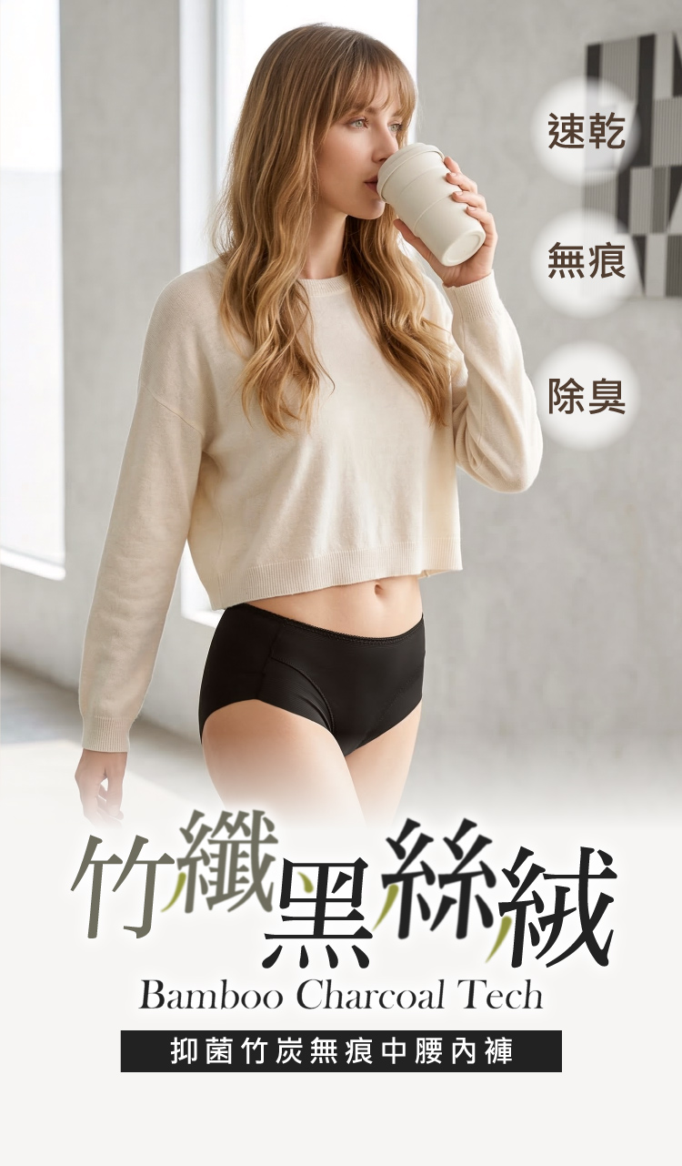 【Clany可蘭霓】黑絲絨抑菌竹炭無痕中腰內褲 M-XL|消臭透氣.舒適包臀 2236-63 深黑