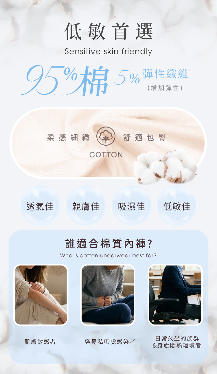 會呼吸的布料,95% 高純棉黃金比例