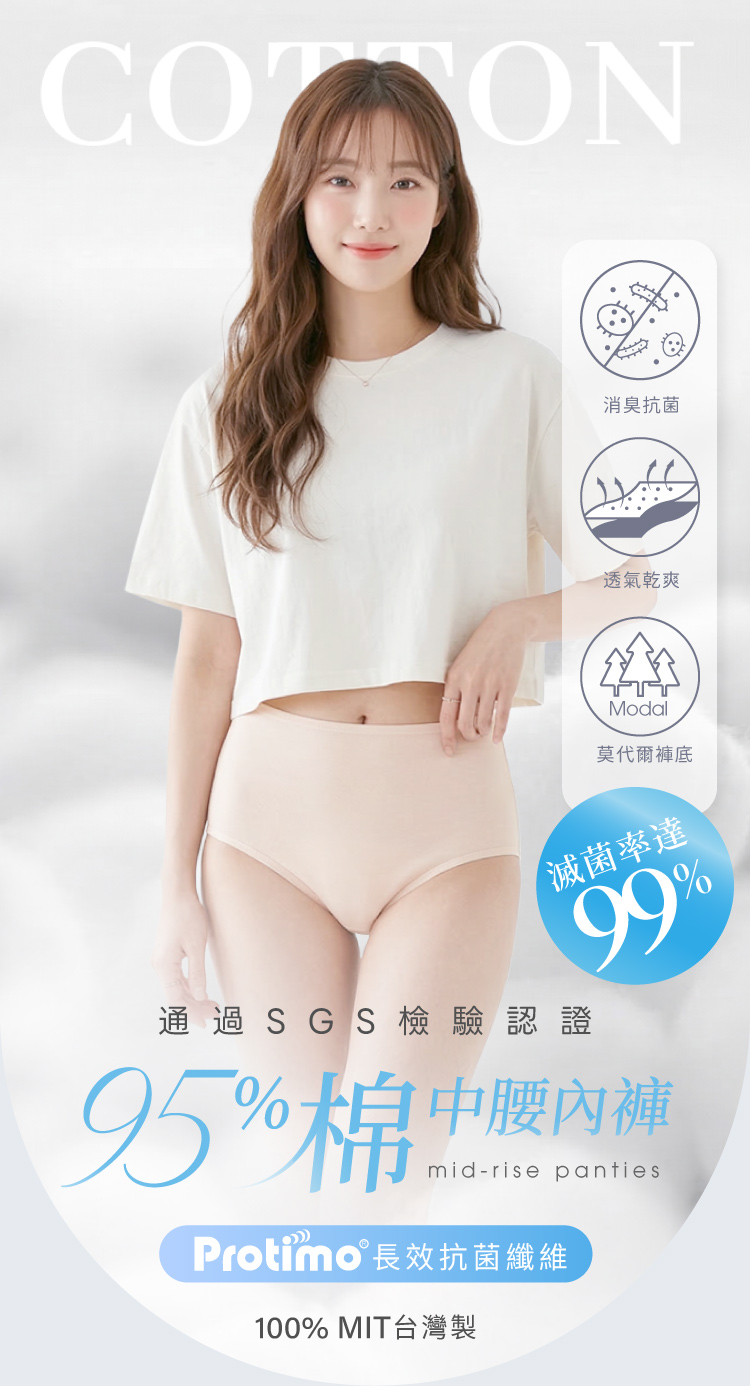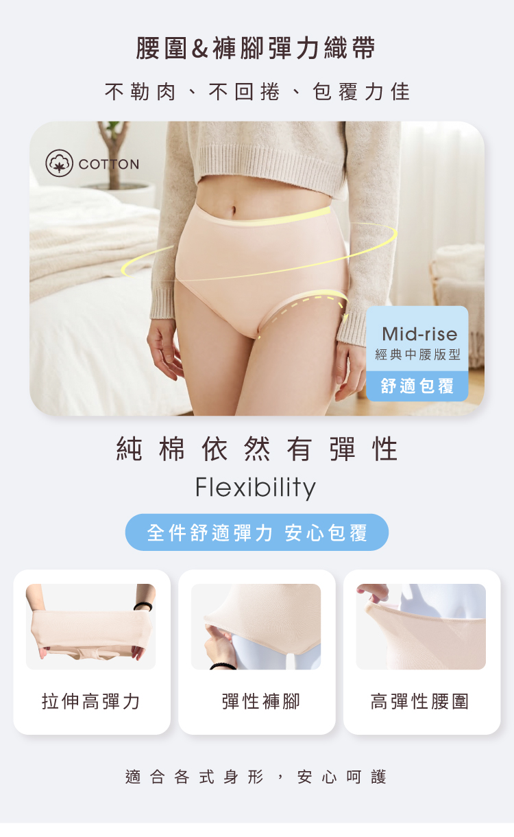 【Clany 可蘭霓】純棉長效抗菌中腰內褲 (M-2XL)|加大尺碼 透氣包臀 2237-11 裸感膚