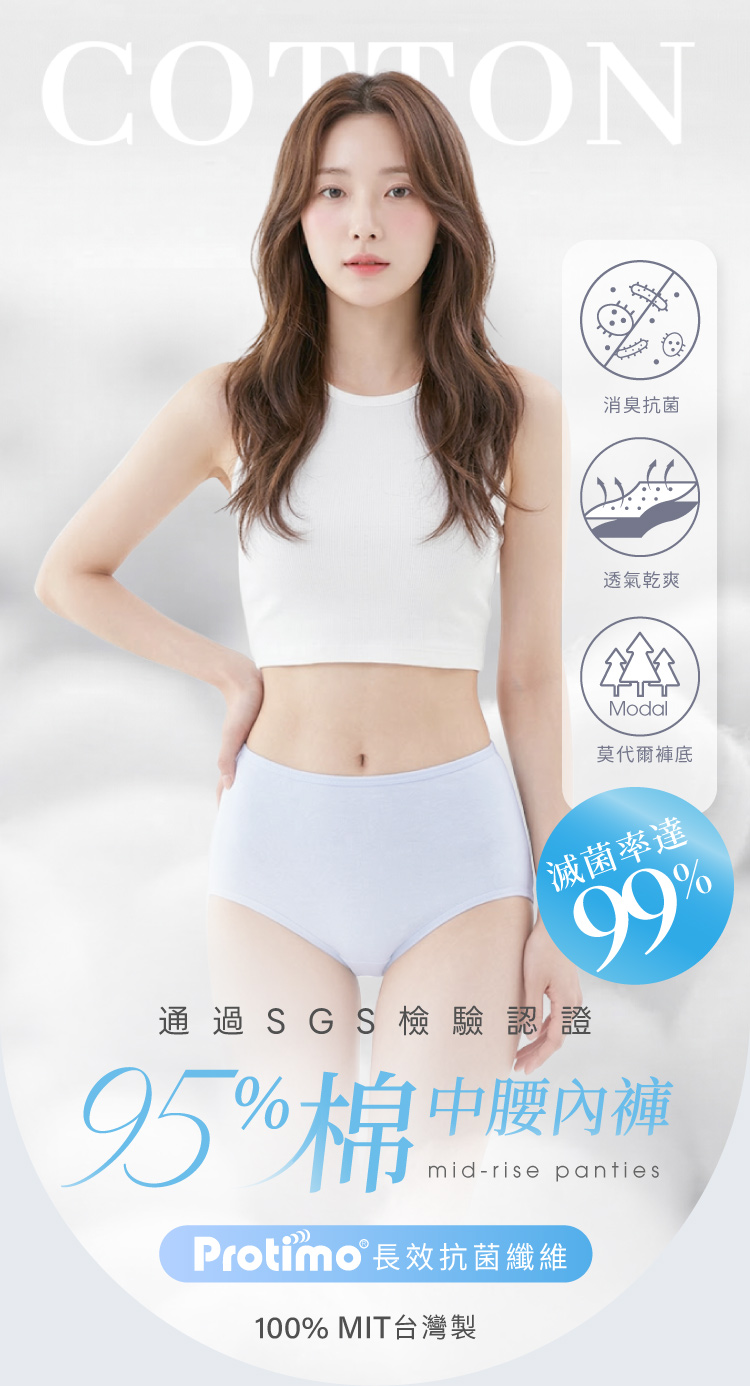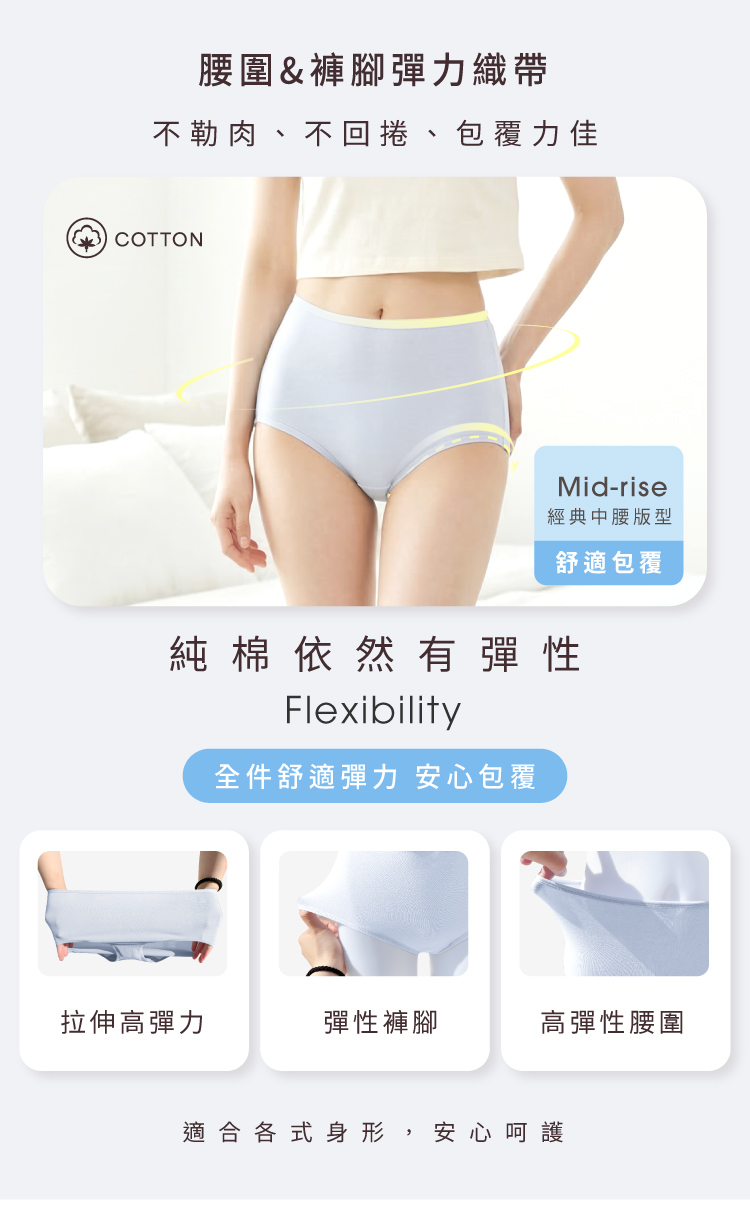 【Clany 可蘭霓】純棉長效抗菌中腰內褲 (M-2XL)|加大尺碼 透氣包臀 2237-51 雲朵藍