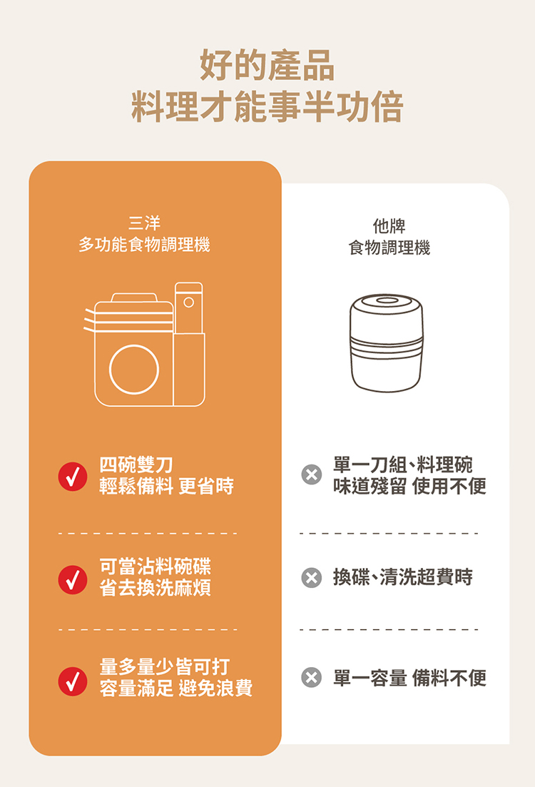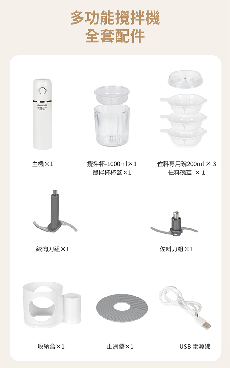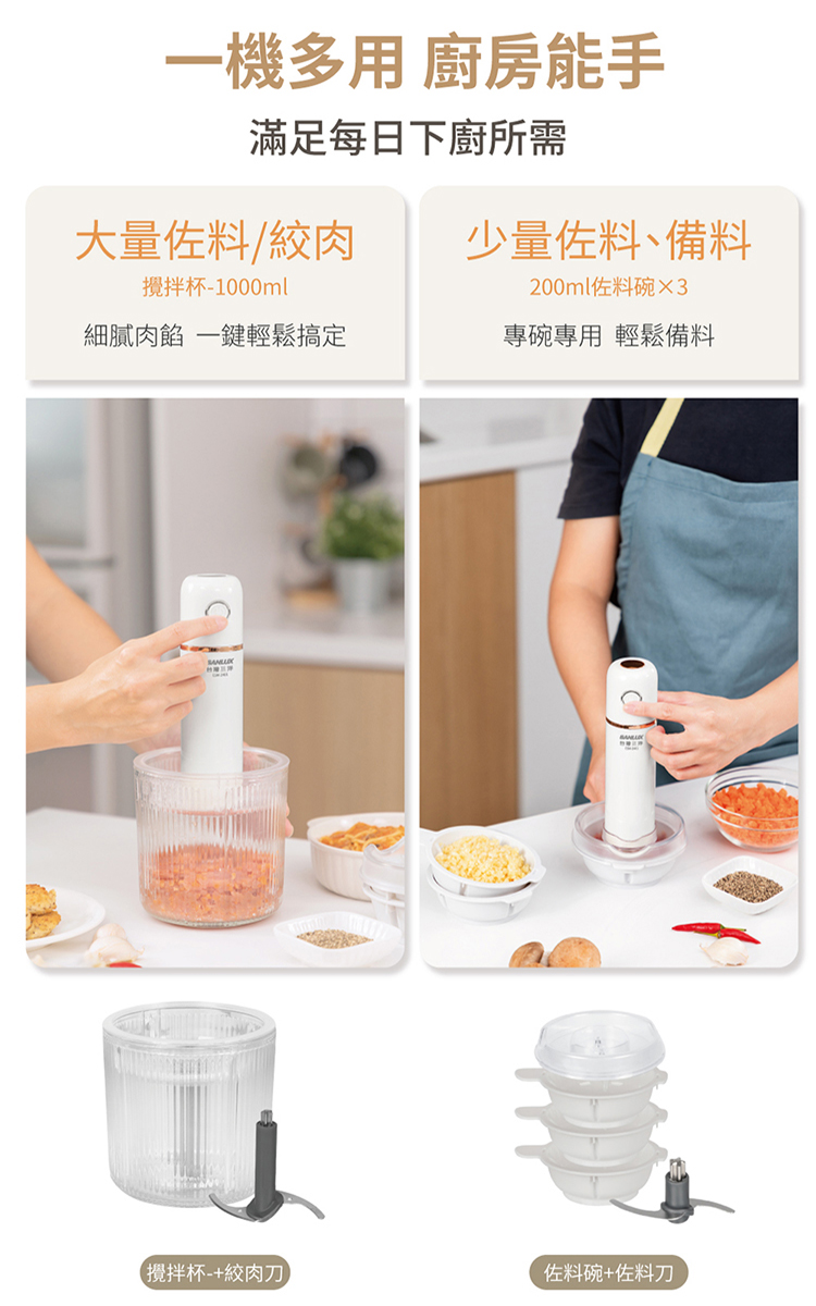 一機多功能,切碎、絞肉、打泥、佐料