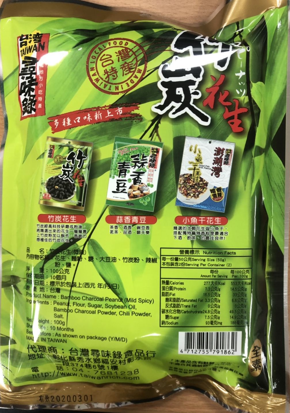 A.台灣尋味錄-竹炭花生[微辣]100g(全素)
