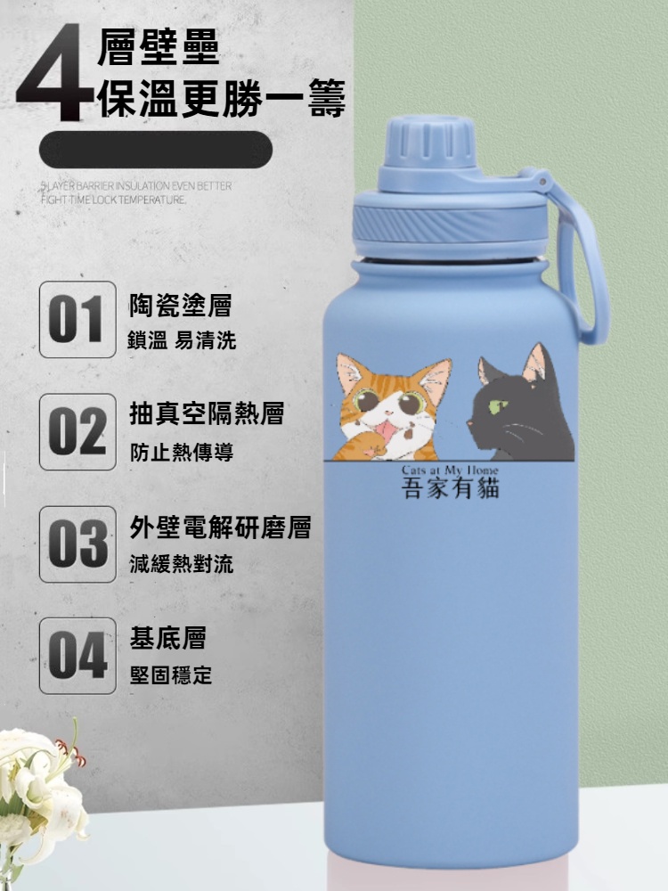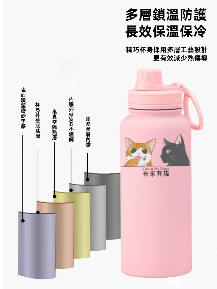 #吾家有貓 #運動水壺 #陶瓷款 #1000ML #大容量 #保冰 #保溫 #環保杯 #專利品牌貓圖 #萌貓 #好品質 #優良