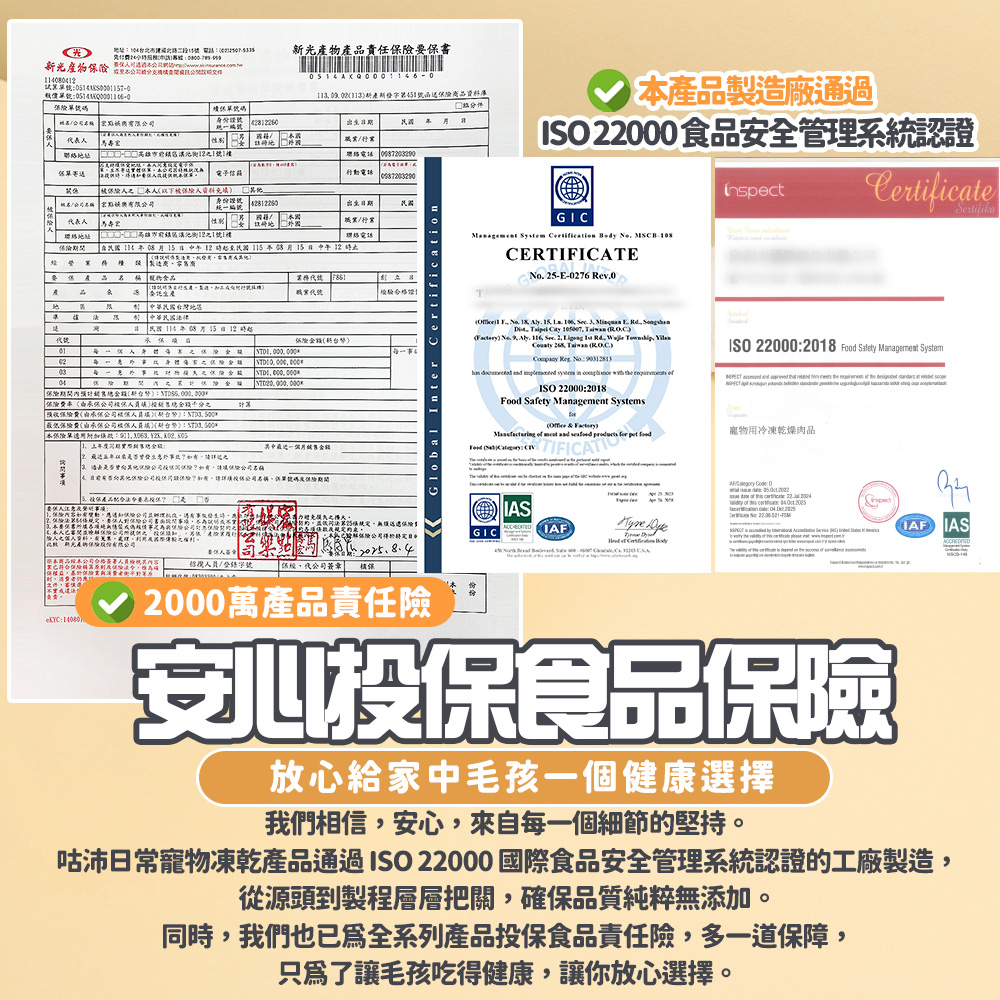 我們相信,安心,來自每一個細節的堅持。咕沛日常寵物凍乾產品通過 ISO 22000 國際食品安全管理系統