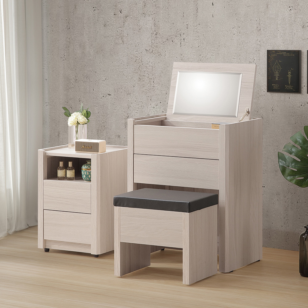 『奶白色外觀搭配木質紋理,是一款簡約時尚及多功能收納的臥室家具,讓您每天的梳妝時光更加愉悅舒適』
